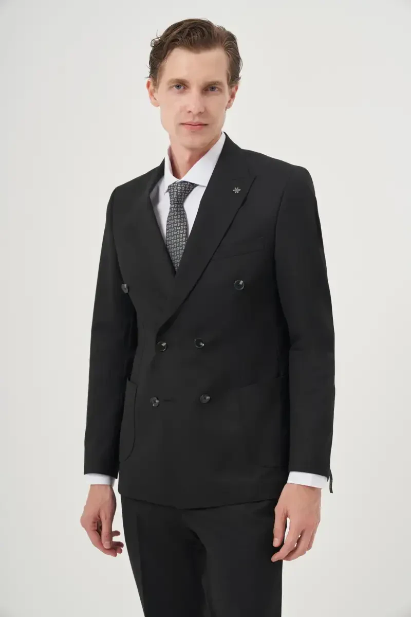 Men's Black Slim Fit Double Breasted Suit | ModaZon Trend Suit