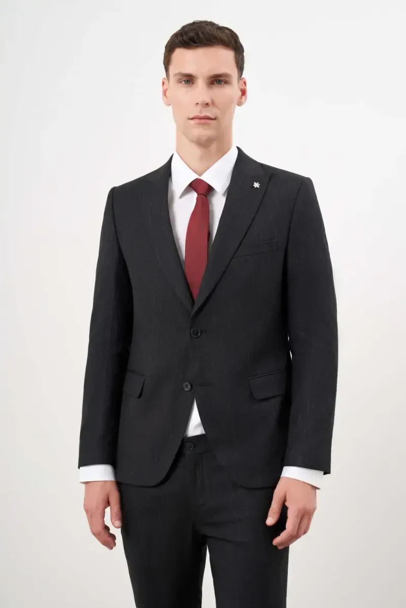 Suit, men's suit, slim fit suit, black suit, polyviscose suit, trendy patterned suit, peak lapel suit, men's clothing, modazone, suit combinations