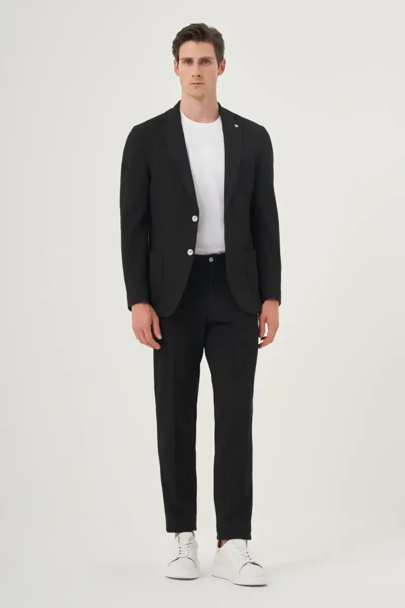 suit, men, slim fit, black, polyviscose, trend, striped, mono collar, fashion, stylish