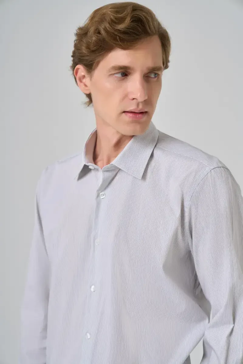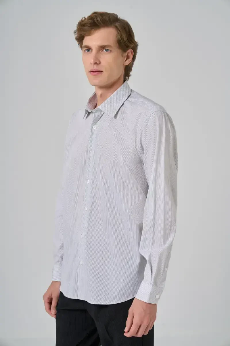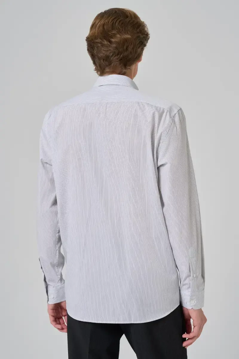 Add a modern touch to your style with the Modazone Men's Black Striped Regular Fit Hard Collar Shirt. This stylish shirt is a perfect choice for both daily use and your special days. The fine striped pattern embroidered on a black background adds a sophisticated touch to the shirt, while the regular fit cut allows you to be comfortable all day long. The hard collar design gives the shirt a separate stance, creating an ideal base for use with or without a tie. Thanks to its quality fabric, it does not sweat, allows your skin to breathe and offers a comfortable experience all day long. Whether you wear it in the office, at an evening dinner, or on your weekend trips, you will reflect your elegance and style in every environment. This shirt, produced with Modazone quality, is designed for long-lasting use. The care in the stitching details and the quality of the materials used ensure that the shirt maintains its original appearance for a long time. This shirt, which is a candidate to be one of the most loved pieces of your wardrobe, can be easily combined with your trousers in different colors and cuts. You can complete it with dark colored trousers and leather shoes for a classic look, or combine it with jeans and sneakers for a more sporty style. Modazone Men's Black Striped Regular Fit Hard Collar Shirt will be indispensable for stylish men. You can always create a remarkable and unique style with this shirt that offers elegance, comfort and quality together. Be sure to try this special shirt to reflect your own style and make a difference in any environment. Feel the Modazone difference and dazzle with your elegance!