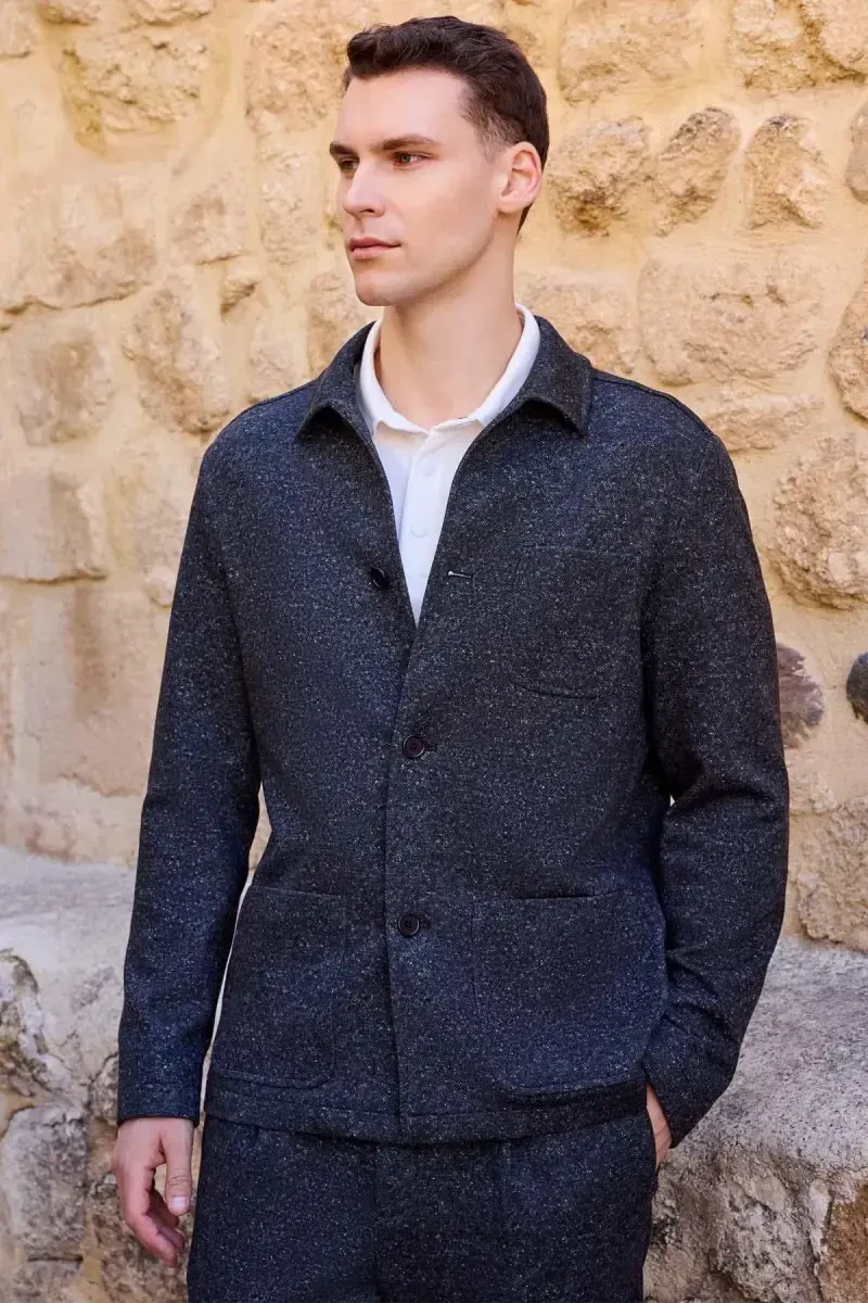 Men's Wool Shirt: ModaZon Black Barber Collar, Bag Pockets | Stylish and Warm