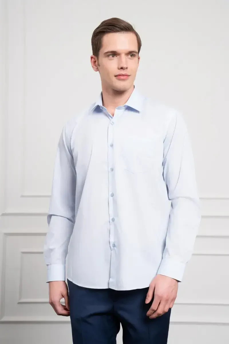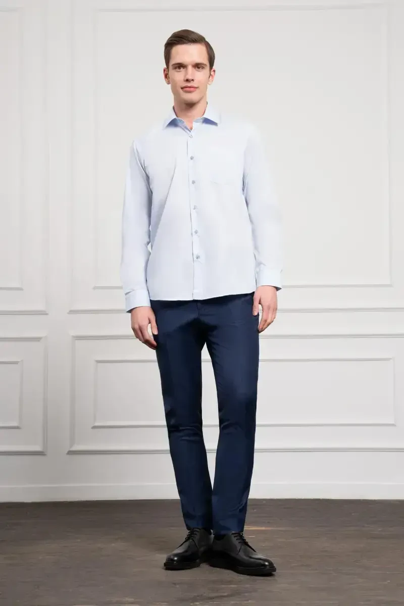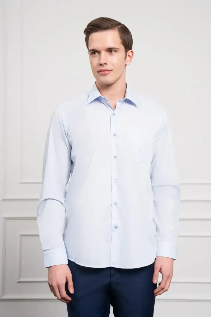 Moda Zonu Men's Blue Plain Regular Fit Classic Collar Pocketed Shirt, 100% Cotton, Long Sleeve, Buttoned, Seasonal.