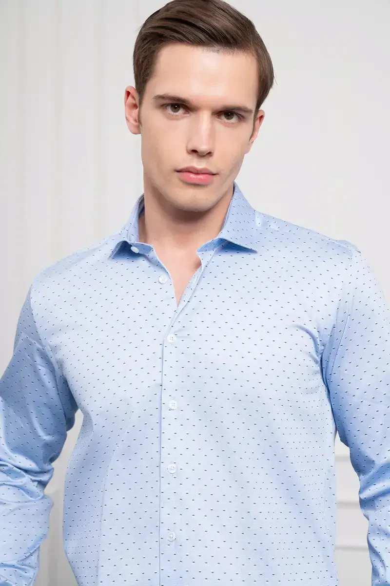 Take your style to the next level with the Moda Zonu Men's A. Blue Cotton Printed Patterned Italian Collar Slim Fit Shirt. This specially designed shirt is a must-have in the modern man's wardrobe. Thanks to its 100% cotton fabric, it offers breathable, light and comfortable use all day long. It gently touches your skin, prevents sweating and ensures you feel comfortable all day long. The slim fit cut creates a stylish silhouette that hugs your body and reveals your lines. This cut offers a versatile look that you can wear both for daily use and for special occasions. The Italian collar detail adds a sophisticated and distinguished air to the shirt. This collar model, suitable for use with or without a tie, allows you to personalize your style as you wish. The neat stance of the collar ensures you always have a well-groomed and meticulous appearance. The unique printed pattern helps you create a unique style by removing the shirt from ordinariness. The vibrant and eye-catching blue tones reflect your energy, while the pattern details add dynamism to the shirt. This shirt has a wide range of uses, from business life to social events. You can create a stylish office style with a classic trousers and jacket combination, or achieve a more comfortable and casual look with jeans and sneakers. It ensures you always feel stylish and confident when meeting your loved ones, dining at a restaurant or attending a special event. This shirt, produced with Moda Zonu quality, offers long-lasting use. Thanks to the durability of its fabric, it maintains its original appearance for a long time. Its colors do not fade, its shape does not deteriorate and its seams do not come apart. In this way, it becomes an indispensable part of your wardrobe. Reflect your style and attract attention in every environment with this shirt that combines elegance, comfort and quality.