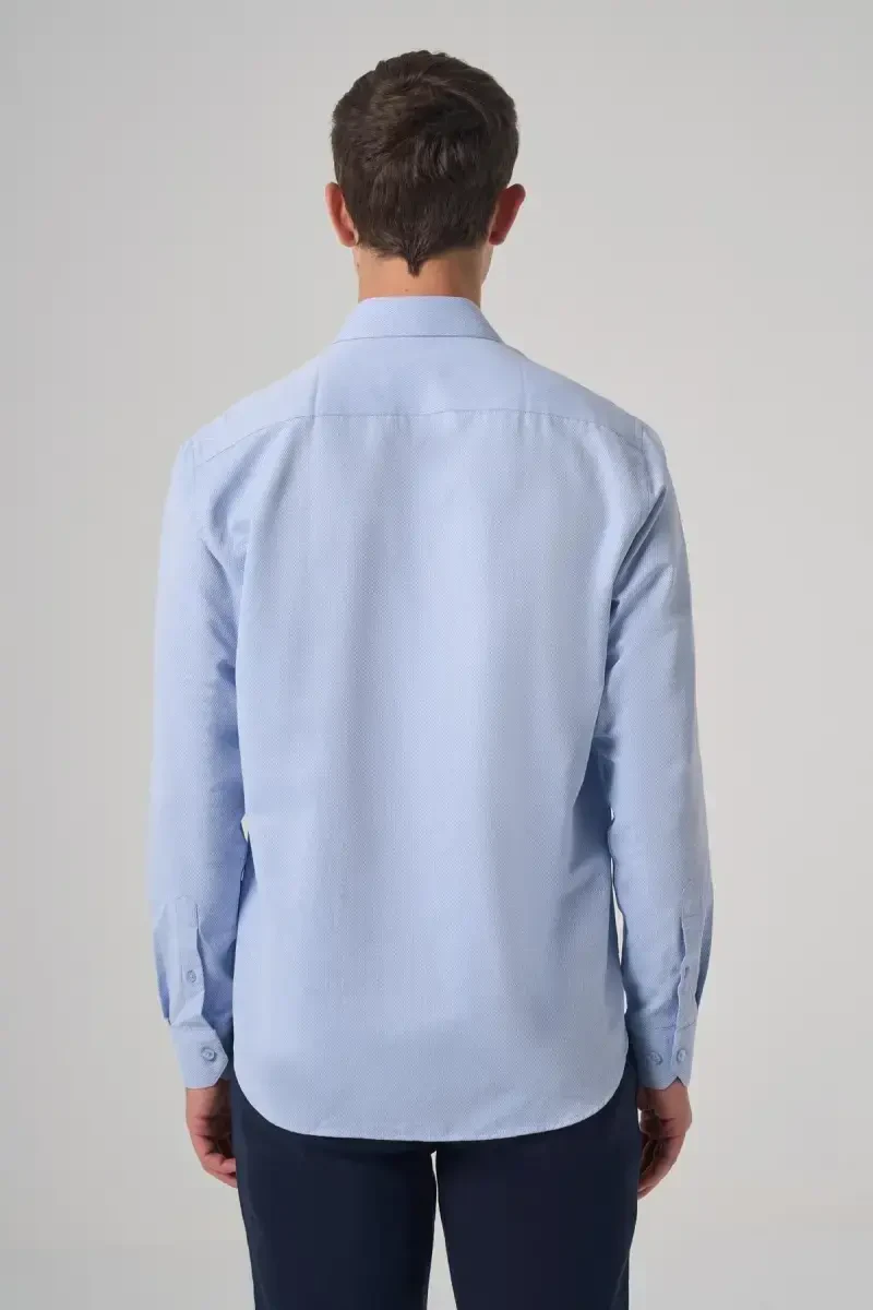Add a modern and dynamic touch to your style with the Modazone Men's Blue Polyester Trendy Patterned Dynamic Fit Italian Collar Shirt. This shirt combines elegance and comfort, allowing you to stand out in any environment. Its eye-catching blue color and trendy patterns add a unique flair to your outfit. Whether for a special occasion or everyday wear, this shirt helps you reflect your style in the best way.Thanks to its 100% polyester fabric, it offers comfortable use all day long. The durability and easy-to-iron properties of polyester make this shirt an indispensable part of your wardrobe. The lightweight structure of the fabric allows you to feel cool and fresh even in hot weather. In addition, thanks to the color-retaining feature of polyester fabric, your shirt stays as new as the first day for a long time.The dynamic fit cut fits your body perfectly and does not restrict your freedom of movement. This cut allows you to achieve a modern and fit look. The shirt fits perfectly on you, highlighting your elegance while providing a comfortable wearing experience. Dynamic fit adapts to every body type, increasing your self-confidence.The Italian collar design adds a sophisticated touch to the shirt. The Italian collar is suitable for use with or without a tie, allowing you to make different combinations. The cut of the collar makes your facial features more prominent, adding an elegant touch to your appearance. The Italian collar combines classic and modern style, ensuring you always look stylish and well-groomed.Moda Zonu Men's Blue Polyester Trendy Patterned Dynamic Fit Italian Collar Shirt is a must-have in the wardrobe of stylish men. This shirt offers both elegance and comfort, making you feel good in any environment. Produced with quality material and meticulous workmanship, this shirt is a durable product that you can use for many years. Reflect your style with Moda Zonu quality and always stay one step ahead. You can use the shirt for special occasions by combining it with stylish trousers and a jacket, or complete it with jeans and sneakers for a casual style. In any case, this shirt will complete your style and make you stand out. Discover your style with Moda Zonu and always stay stylish.