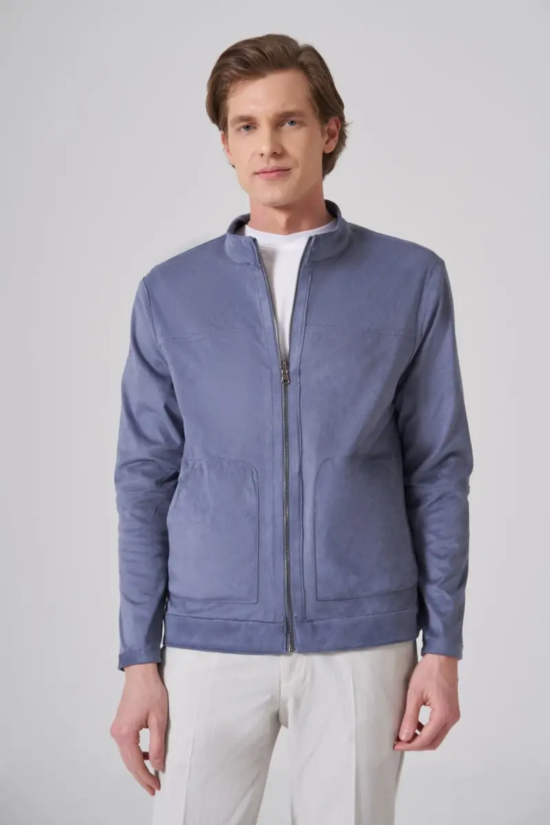 Modazone Men's Blue Trendy Reversible Suede Jacket is one of the most special pieces that should be in the wardrobe of stylish men. Standing out with both its modern design and functional structure, this jacket will be your essential for seasonal transitions. While it showcases the noble stance of high-quality and soft-textured suede fabric on one side, it offers the freedom to create two different combinations with a single product thanks to its different fabric texture on the other side. Whether you want to achieve a sporty elegance with casual jeans or create a more formal look with your fabric trousers, this jacket adapts perfectly to every style. The depth and remarkable tone of the blue color reflect the energy of spring months to your style, while its high-quality craftsmanship ensures it maintains its form for many years. Designed specifically for those seeking comfort in daily use, its cut fits your body perfectly and does not restrict your range of motion. Thanks to its lightweight structure, it allows you to be protected from cool spring winds without weighing you down. The importance given to details is felt in every point, from the quality of the stitching to the zipper mechanism used. Offering both elegance and comfort, this versatile piece is a candidate to be the favorite of men who want to express their style freely. Accompanying you in the tempo of city life, this reversible jacket will become the most functional piece in your wardrobe.