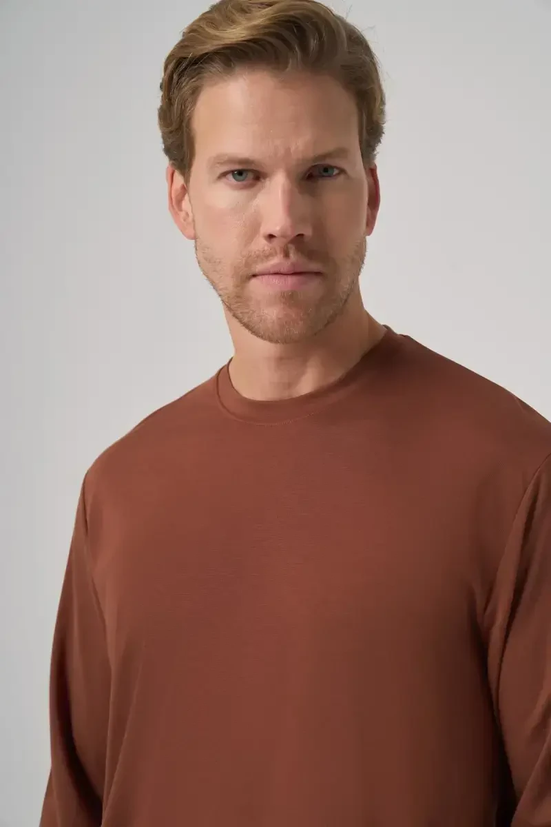 ModaZOne Kiremit Bisiklet Yaka Erkek Sweatshirt | Trend Rayon