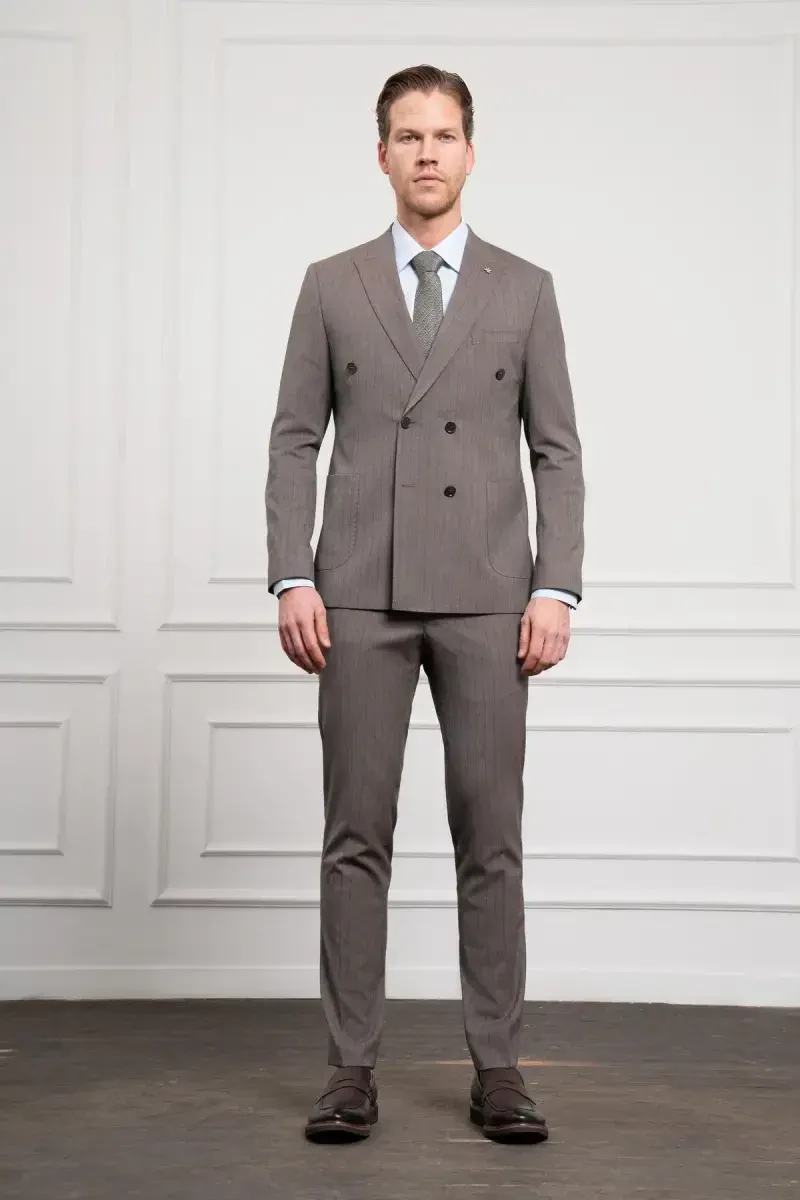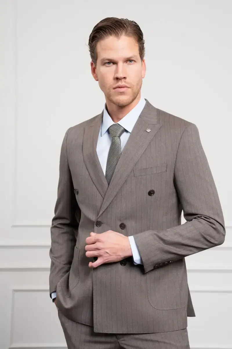 The ModaZon Men's COFFEE Trend Slim Fit Peak Lapel Double Breasted Suit is designed for the stylish look of the modern man. Thanks to its slim fit, it attracts attention with its body-hugging structure, while the double-breasted design and peak lapel detail combine classic and modern lines. The warm tone of the coffee color is a candidate to be an indispensable part of your wardrobe, adapting to all kinds of combinations. Thanks to its high-quality fabric, it offers comfort throughout the day and allows for long-lasting use. It is an ideal choice for business meetings, special occasions or to complete your daily elegance. If you want to reflect your own style and attract attention, this suit is for you. This special design that will take your elegance to the next level will be one of the best investments you can make in yourself. You can create different styles with your shirt, tie and shoe combinations, and show your difference in any environment. This suit, produced with ModaZon quality, is not just a garment, but also a style statement.