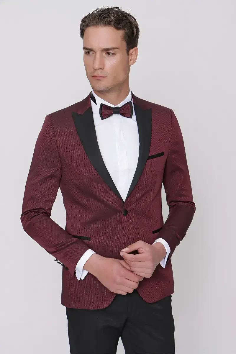 Burgundy Taiga Pattern Slim Fit Groom Suit | Ceromonia