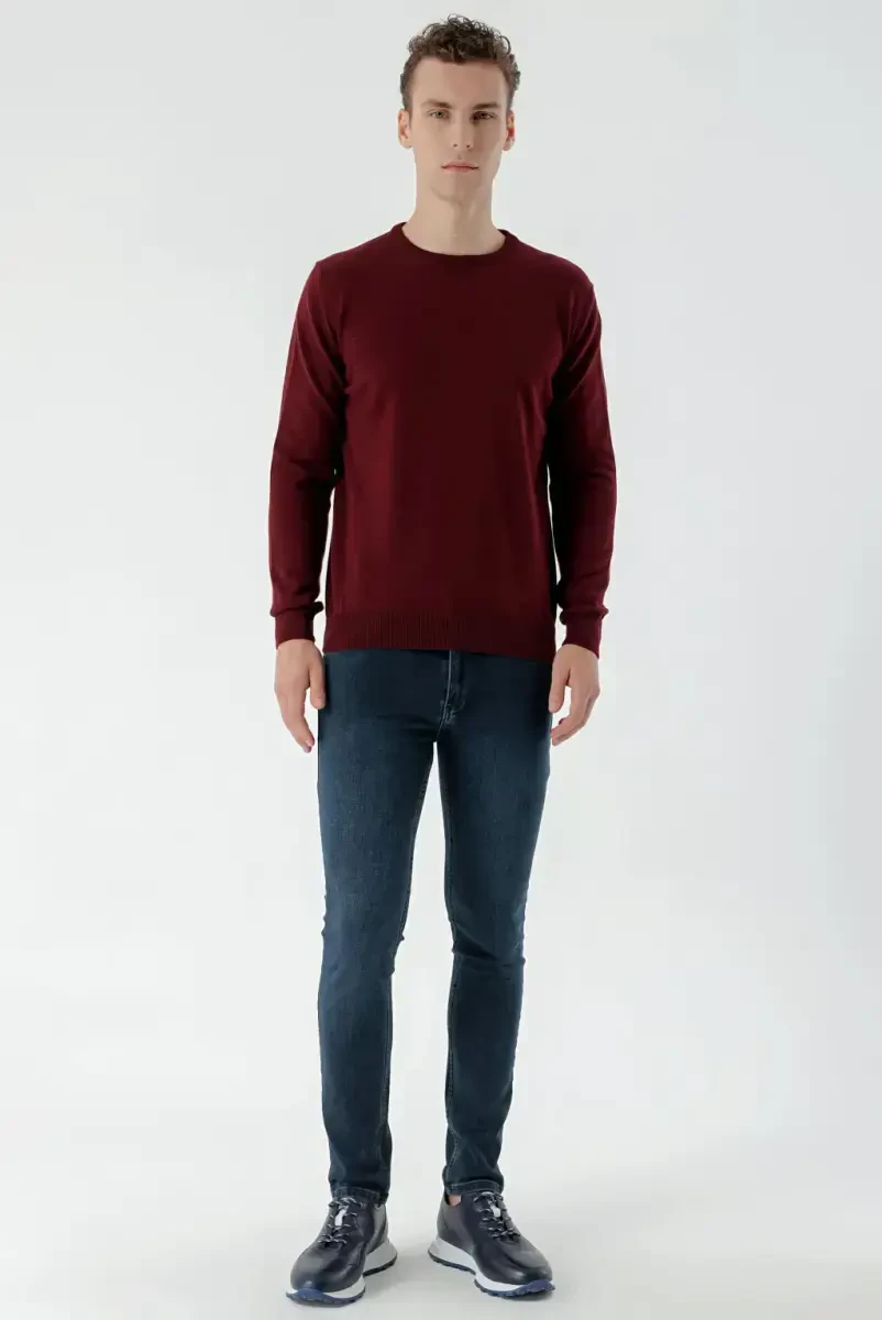 Crew neck, acrylic, wool, dynamic fit, comfort fit, dark burgundy, burgundy sweater, men's sweater, winter sweater, knitted sweater