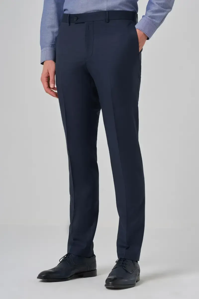 Navy Blue Slim Fit Men's Trousers | Classic Cut, Stylish and Comfortable