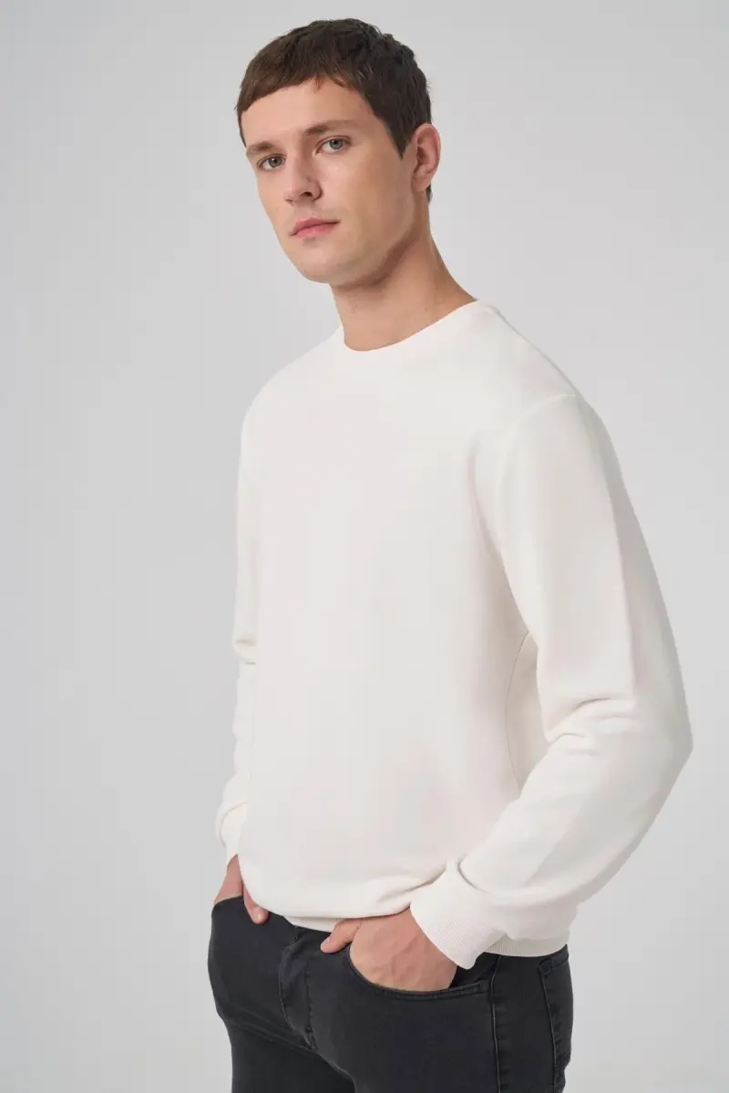 ModaZon Men's Ecru Basic Crew Neck Sweatshirt is a must-have piece in the wardrobes of stylish men. It is an excellent option for both daily use and creating more comfortable combinations. The most distinctive feature of our product is that it is made of high-quality cotton fabric. This provides a soft touch to your skin and offers a comfortable use experience throughout the day. The ecru color can be easily combined with all kinds of clothes and creates a timeless elegance. The crew neck design offers a modern and minimalist look, while also providing comfortable use. Our sweatshirt promises long-lasting use with its careful stitching details and high-quality workmanship. Whether you create a sporty style with jeans or achieve a more casual look with elegant trousers, the ModaZon Men's Ecru Basic Crew Neck Sweatshirt will help you reflect your style in any case. You can wear it alone in cold weather, or you can easily wear it inside your jackets or coats. Thanks to its flexible structure, it does not restrict your freedom of movement and accompanies you in every activity. ModaZon always prioritizes quality and elegance. This sweatshirt is a reflection of this understanding. The cotton used in the fabric of the product has a breathable structure, which minimizes sweating and keeps you fresh throughout the day. It is also easy to wash and iron, which provides ease of use. With the ModaZon Men's Ecru Basic Crew Neck Sweatshirt, you will both look stylish and enjoy comfort all day long. This sweatshirt, which is a candidate to be the most loved piece of your wardrobe, is designed to suit the style of every man. It is an ideal choice for men looking for elegance and comfort together. Remember, you are always one step ahead with ModaZon!