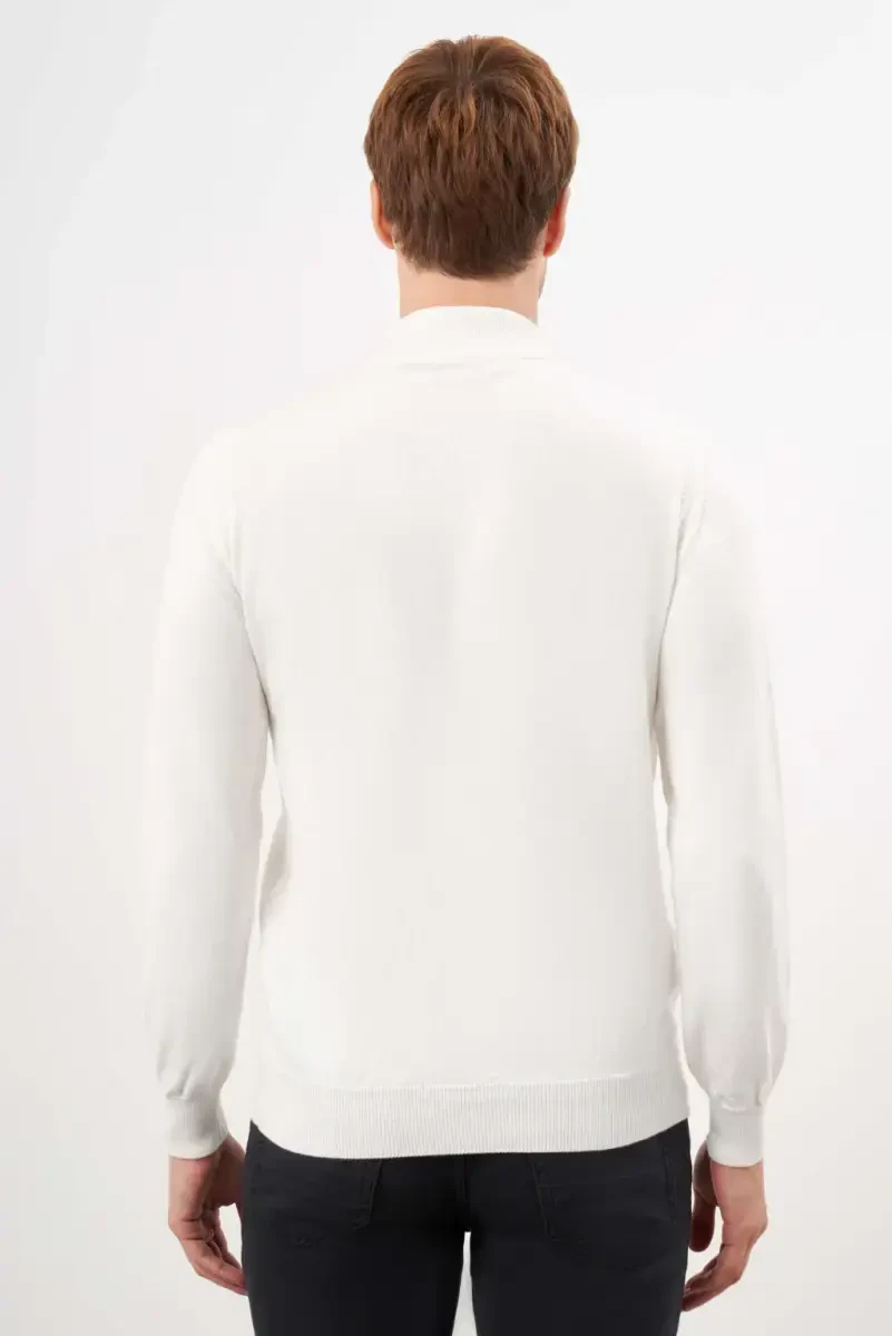 Men's Ecru Fisherman's Collar Knitwear | Dynamic Fit Relaxed Fit | ModaZon
