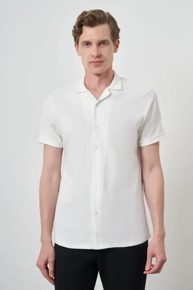 Take your style to the next level with the ModaZOne Men's Ecru Trend Apache Collar Short Sleeve Shirt. This shirt is not just a garment, but also a form of expression. The modern and bohemian touch of the Apache collar turns an ordinary shirt into an extraordinary piece. The timeless elegance of the ecru color ensures that you attract attention in any environment. The short-sleeved design of the shirt keeps you cool on hot summer days, while its cotton fabric gently touches your skin. Whether you combine it with jeans in daily life or complete it with stylish trousers for a special occasion, the ModaZOne Men's Ecru Shirt will always be a perfect choice. The light and comfortable structure of the shirt offers freedom of movement throughout the day. The attention to detail in the stitching and the quality workmanship ensure that the shirt is long-lasting. This shirt, which is a candidate to be the most loved piece of your wardrobe, is an ideal option to reflect your style and feel good. This shirt, produced with ModaZOne quality, is designed for men who are looking for both elegance and comfort. This shirt, every detail of which has been carefully thought out, will complete your style and add confidence to you. Make your style speak and make a difference with this shirt, which will be the indispensable of summer months.