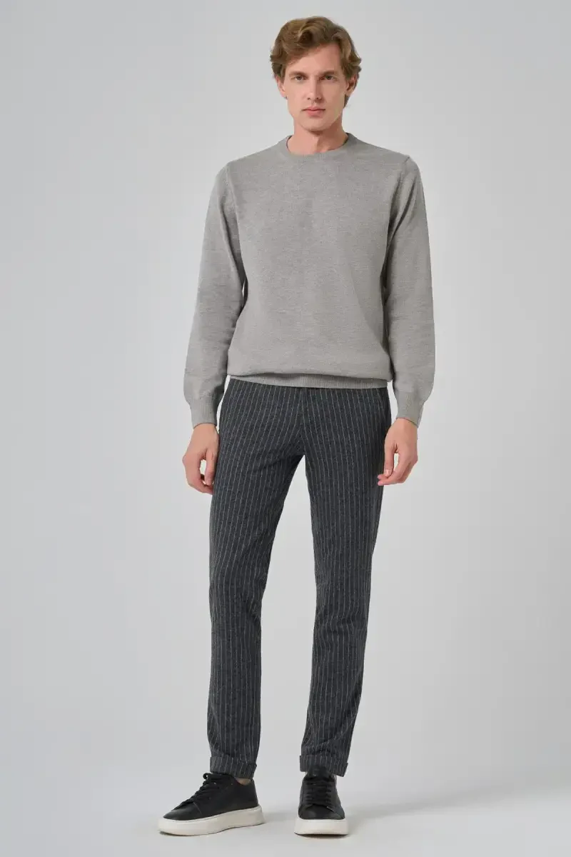 Men's Grey Knitted Sweater | Basic Crew Neck Dynamic Fit Relaxed Fit