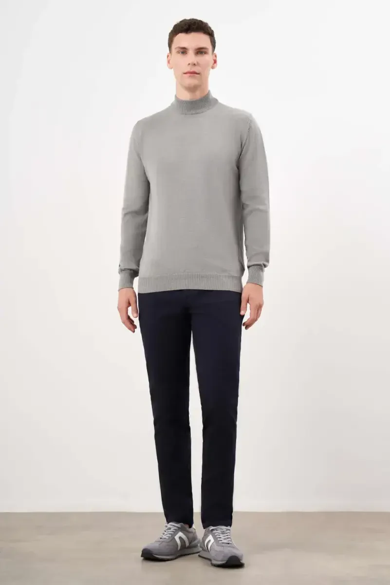 Moda Zonu Men's Grey Basic Half Turtleneck Dynamic Fit Relaxed Fit Knitwear is a versatile and stylish option that should be in the wardrobe of the modern man. This knitwear stands out not only with its appearance but also with the comfort it offers. Thanks to its high-quality material, it offers comfort all day long, while its special knitting technique promises long-lasting use. The timeless elegance of the gray color allows you to try different styles by harmonizing with all kinds of combinations. Whether you combine it with classic jeans or more sporty sweatpants, you will always achieve a stylish look. The half turtleneck detail adds a modern touch to the knitwear while protecting your neck from the cold. The "Dynamic Fit" cut fits your body perfectly, does not restrict your freedom of movement and creates a stylish silhouette. The "Relaxed Fit" feature offers a comfortable wearing experience all day long. This knitwear is an ideal choice for both daily use and special occasions. You can combine it with a shirt and blazer jacket to achieve a stylish look in the office, or complete it with jeans and sneakers for a comfortable style on the weekend. Moda Zonu Men's Grey Basic Half Turtleneck Dynamic Fit Relaxed Fit Knitwear is not just a piece of clothing, but also a form of expression that reflects your style and personality. With its quality workmanship, modern design and superior comfort, this knitwear is a candidate to be one of the most loved pieces of your wardrobe. If you do not want to sacrifice your elegance while staying warm in cold weather, this knitwear is for you. This knitwear, which will suit the style of every man, will meet your expectations by offering both elegance and comfort. Produced with Moda Zonu quality, this knitwear will maintain its place in your wardrobe for many years and will always offer you a stylish look. Discover this knitwear now to feel special and reflect your style in the best way.