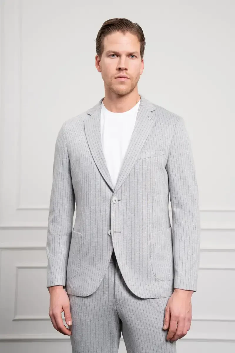 Men's suit, slim fit suit, grey suit, peak lapel, trendy suit, ModaZOne, modern men's clothing, stylish suit, event suit, business attire