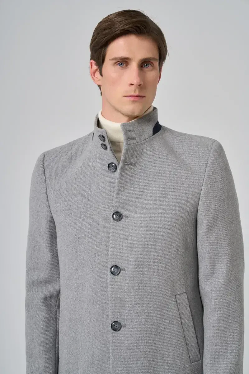 Men's Grey Wool Coat | Dynamic Fit Stand-up Collar | ModaZon Elegance