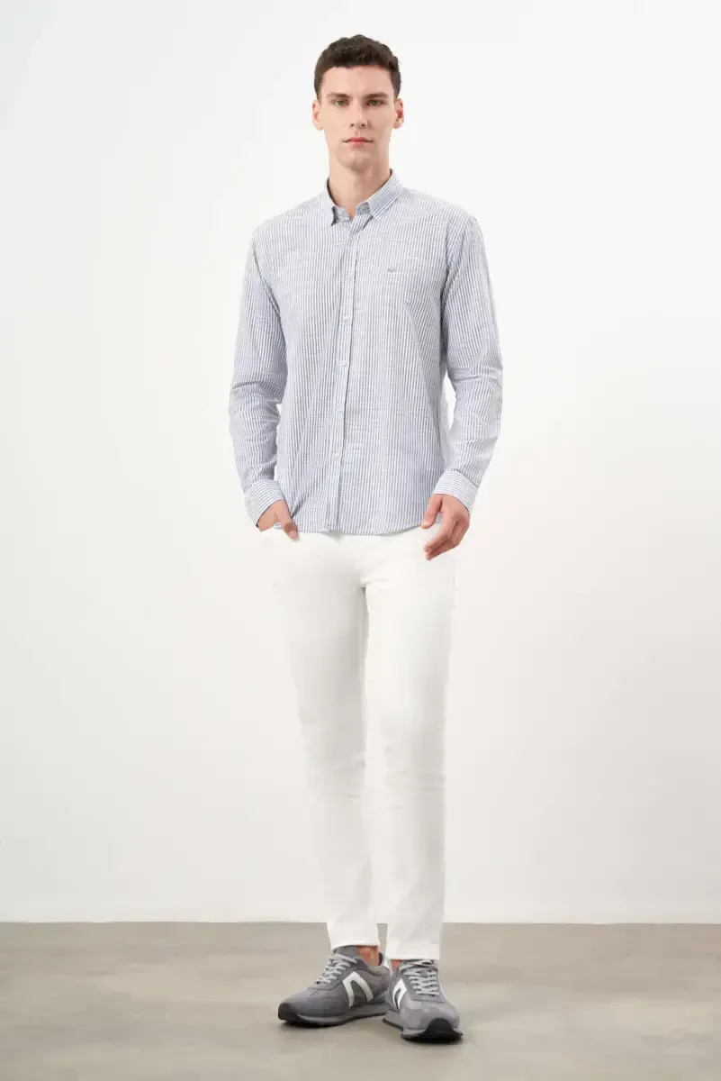 Elegance and Comfort Together That Appeals to Your Fashion Taste! Be ready to add a modern touch to your wardrobe with the Modazone Men's Gray Cotton Striped-Panel Italian Collar Slim Fit Shirt. This special design shirt is a perfect choice for both daily use and your special occasions. You will enjoy comfort all day long with its Italian collar cut, slim fit and the superior comfort offered by its cotton fabric. The nobility of the gray color combines with striped and paneled details, adding a unique touch to the shirt.Product DescriptionModazone Men's Gray Cotton Striped-Panel Italian Collar Slim Fit Shirt is a must-have piece in the modern man's wardrobe. The Italian collar cut gives the shirt a sophisticated look, while the slim fit gently reveals your body lines. Thanks to the breathable structure of the cotton fabric, it eliminates the problem of sweating throughout the day and ensures that your skin is comfortable. The timeless elegance of the gray color is enlivened with striped and paneled details, adding a dynamic touch to the shirt. This special design shirt can adapt to any environment, from business meetings to special invitations, from weekend trips to daily use. It is an ideal choice to reflect your elegance and style. The fabric of the shirt is made of high quality cotton. In this way, it offers long-lasting use and does not wear out easily. Its colors do not fade and retain their vitality as on the first day. The seams of the shirt are meticulously made and its durability is increased. In this way, you can use it safely for many years. This shirt, produced with Modazone quality, will meet your expectations by offering elegance and comfort together. You can create a confident stance in business meetings by combining the shirt with a stylish jacket and trousers. You can maintain your elegance on weekend trips by combining it with jeans and sneakers for a more casual look. For special occasions, you can create a dazzling effect by completing the shirt with a stylish tie and suit. It is now very easy to always look stylish and well-groomed with the Modazone Men's Gray Cotton Striped-Panel Italian Collar Slim Fit Shirt. Reflect your style and attract attention with this special design shirt that will be an indispensable part of your wardrobe. While the soft texture of the fabric gives your skin a pleasant feeling, the slim fit cut allows you to achieve a fit look with its body-hugging structure. The shirt's cuffs are buttoned and easily adjustable. In this way, it fits your wrists perfectly and completes your elegance. The buttons on the front of the shirt are made of high-quality material and can be easily opened and closed. The color of the buttons is compatible with the color of the shirt, adding elegance to the overall appearance of the shirt. The collar of the shirt has an easy-to-iron structure and always looks neat. While the Italian collar cut adds a modern touch to the shirt, it is also suitable for tie use. You can reflect your style by combining the shirt with ties in different colors and patterns. Modazone Men's Gray Cotton Striped-Panel Italian Collar Slim Fit Shirt is an ideal choice for men who are looking for elegance and comfort together. You can always look well-groomed and stylish with this special design shirt.Product Features* Italian collar cut* Slim fit* Cotton fabric* Striped and paneled details* Gray color* Long lasting use* Easy ironing* Buttoned cuffs* High quality buttons* Breathable fabric structure* Does not cause sweating* Skin-friendly material* Suitable for daily and special occasion use* Stylish and modern designAdditional InformationWash the shirt at 30 degrees with similar colors. Do not use bleach. Iron on low heat. Dry cleaning can be done. The size on the model is M. Product content: 100% Cotton.