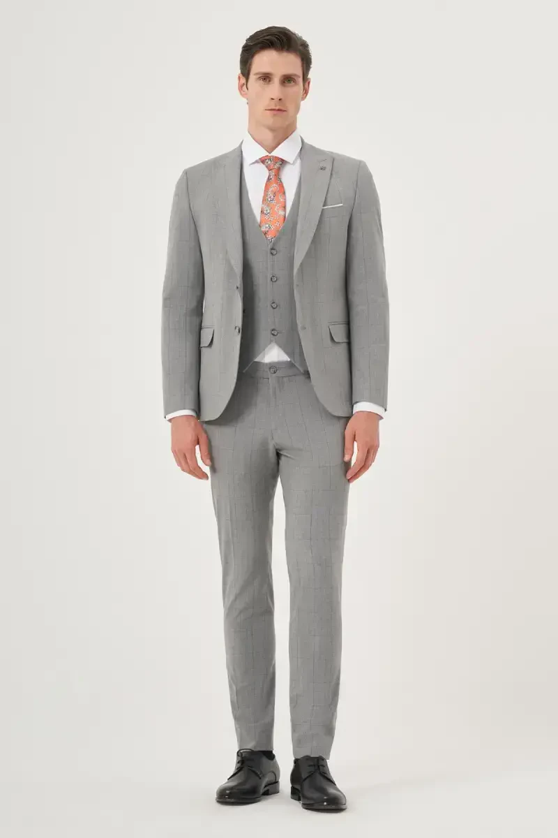 Elevate your elegance and style with the ModaZon Men's Grey Polyviscose Trendy Vested Plaid Slim Fit Peak Lapel Suit. This uniquely designed suit is a must-have in the modern man's wardrobe. Its slim fit cut accentuates the body, while the plaid pattern and vest detail offer a distinctive look. The grey polyviscose fabric ensures comfortable wear and adds a sophisticated touch to the suit.Product DescriptionThe ModaZon Men's Grey Polyviscose Trendy Vested Plaid Slim Fit Peak Lapel Suit is poised to become an indispensable item for modern and stylish men! This suit, with its unique design and high-quality fabric, ensures you'll stand out in any setting. The slim fit cut flawlessly highlights your body's contours, while the plaid pattern and vest detail add originality to your style. Thanks to the comfort provided by the grey polyviscose fabric, you'll enjoy a comfortable wearing experience all day long. Whether at business meetings or special events, you'll always look chic and confident in the ModaZon suit. The peak lapel design adds a modern touch to the suit, while the vest detail completes your elegance. The suit consists of three pieces: a jacket, trousers, and a vest, each perfectly complementing the other. The slim fit cut of the trousers makes your legs look longer and fitter, while the shoulder and arm structure of the jacket fits your body perfectly. The vest adds a unique flair to the suit and allows you to create different combinations. You can complete your style with accessories such as a shirt, tie, or bow tie. The ModaZon Men's Grey Polyviscose Trendy Vested Plaid Slim Fit Peak Lapel Suit is not just clothing but a lifestyle. It is an investment that will boost your confidence, reflect your style, and make you stand out in any environment. With this suit, you won't just be dressing up; you'll be making a statement. Get this suit now, which will be the most valuable piece in your wardrobe, and enjoy the pleasure of elegance. This suit, meticulously designed in every detail, offers quality and style together. Choose the ModaZon Men's Grey Polyviscose Trendy Vested Plaid Slim Fit Peak Lapel Suit to feel special and express your style in the best possible way.Product Features* Slim fit cut* Plaid pattern* Vest detail* Grey polyviscose fabric* Peak lapel designAdditional InformationThe suit consists of three pieces: a jacket, trousers, and a vest. Dry cleaning is recommended. The product on the mannequin is size 48.