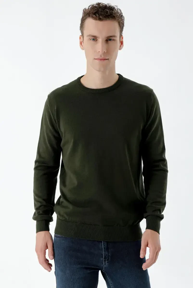 Men's knitwear, khaki knitwear, crew neck, relaxed fit, dynamic fit, basic knitwear, men's clothing, ModaZon, knitted sweater, knitted knitwear