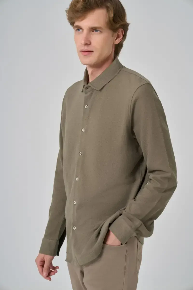 Bring a new breath to your style with ModaZon Men's Khaki Cotton Trend Tree Bark Pattern Dynamic Fit Italian Collar Shirt. This special design shirt is a candidate to be the most beloved piece of your wardrobe by combining elegance and comfort. The khaki color of the shirt represents naturalness and a sophisticated look, while the tree bark pattern offers a unique and modern touch. In this way, you can easily use it in both classic and trendy combinations. The dynamic fit cut helps you create a stylish silhouette by fitting your body perfectly, while the Italian collar detail adds an elegant and distinguished air to the shirt. Thanks to its cotton fabric, it offers a breathable and comfortable wearing experience all day long. Whether in business life or in daily activities, you can always look stylish and well-groomed with this shirt. This shirt, produced with ModaZon quality, also attracts attention with its long-lasting and durable structure. It also saves you time thanks to its easy-to-iron feature. In short, ModaZon Men's Khaki Cotton Trend Tree Bark Pattern Dynamic Fit Italian Collar Shirt is an ideal choice for stylish men. It is a perfect option for those who want to create a remarkable and unique style in any environment. You should definitely try this shirt to refresh your wardrobe and add a different dimension to your style. It can be a great gift alternative for both yourself and your loved ones. Experience elegance and comfort together with ModaZon.