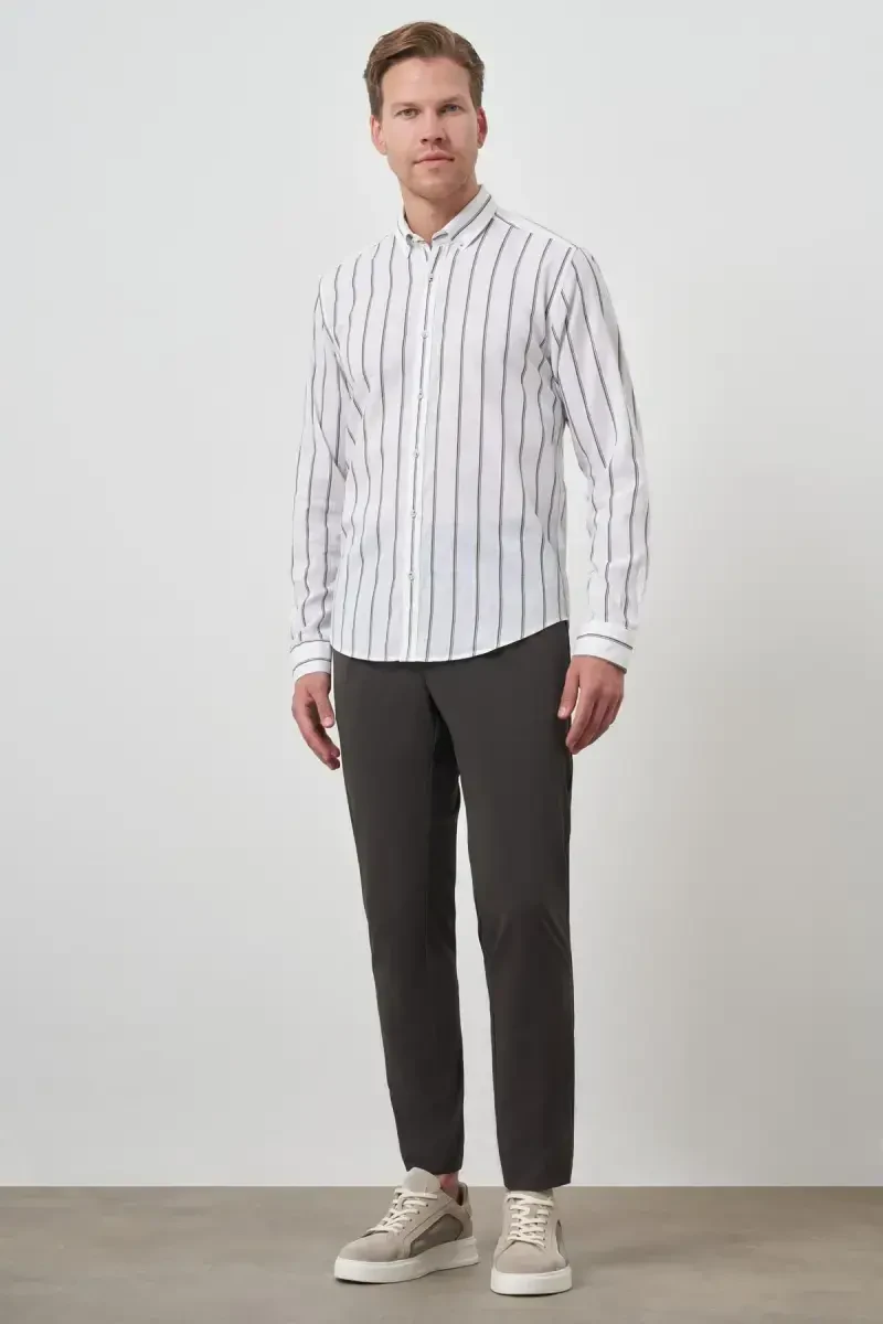 ModaZon Men's Khaki Linen Dynamic Fit Button-Down Collar Shirt offers a combination of comfort and elegance that will be indispensable in the summer months. Thanks to its light and breathable linen fabric, it provides comfortable use all day long even in hot weather. The dynamic fit cut offers a modern look by providing a fitted yet unrestrictive silhouette. The button-down collar detail offers a suitable option for both formal and casual combinations.Product DescriptionAdd both elegance and comfort to your wardrobe with the ModaZon Men's Khaki Linen Dynamic Fit Button-Down Collar Shirt. This shirt is an ideal choice for men who do not want to compromise on comfort, especially in hot weather. The natural structure of the linen fabric allows your skin to breathe thanks to its air permeability and minimizes sweating. Khaki color is a perfect option for those who love nature and earth tones and can be easily combined with many different colors and styles. The dynamic fit cut gently follows the lines of your body while not restricting your freedom of movement. This way you will feel comfortable and stylish all day long. The button-down collar detail allows you to use the shirt in both classic and sporty styles. Whether you are attending a special event by combining it with elegant trousers and a jacket, or creating a casual style with jeans and sneakers, the ModaZon linen shirt adapts to any environment. The buttons of the shirt are made of high-quality material and offer long-lasting use. Stitching details are carefully made, adding elegance to the overall look of the shirt. ModaZon is a brand that combines quality and elegance in men's clothing, and this shirt reflects the brand's philosophy. This shirt, which will be an indispensable part of your summer wardrobe, will complete your style and give you confidence in any environment. It is important to follow the washing instructions to use the shirt for a long time. Hand washing or machine washing at low temperature is recommended. Also, you can protect the color and texture of the shirt by avoiding drying it in direct sunlight. ModaZon Men's Khaki Linen Dynamic Fit Button-Down Collar Shirt is not just a piece of clothing, but also reflects a lifestyle. It is a perfect choice for men who are looking for elegance, comfort and naturalness together.Product Features* Light and breathable linen fabric* Dynamic fit cut* Button-down collar detail* Stylish and comfortable design* Suitable for daily and special occasionsAdditional InformationModel is wearing size M. Wash according to washing instructions. Avoid drying in direct sunlight. Follow the ironing instructions.