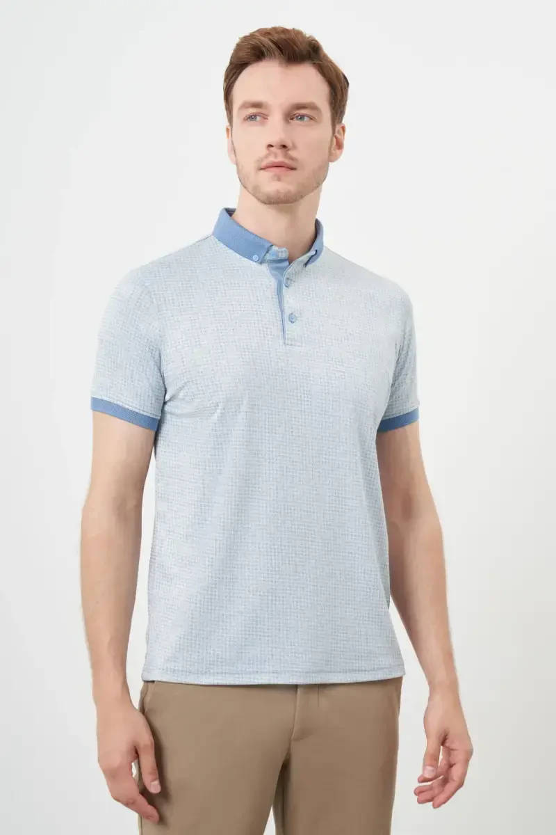 Crew neck, short sleeve, dynamic fit, button-down collar, mercerized, jacquard pattern, 100% cotton, cotton t-shirt, men's t-shirt, patterned t-shirt