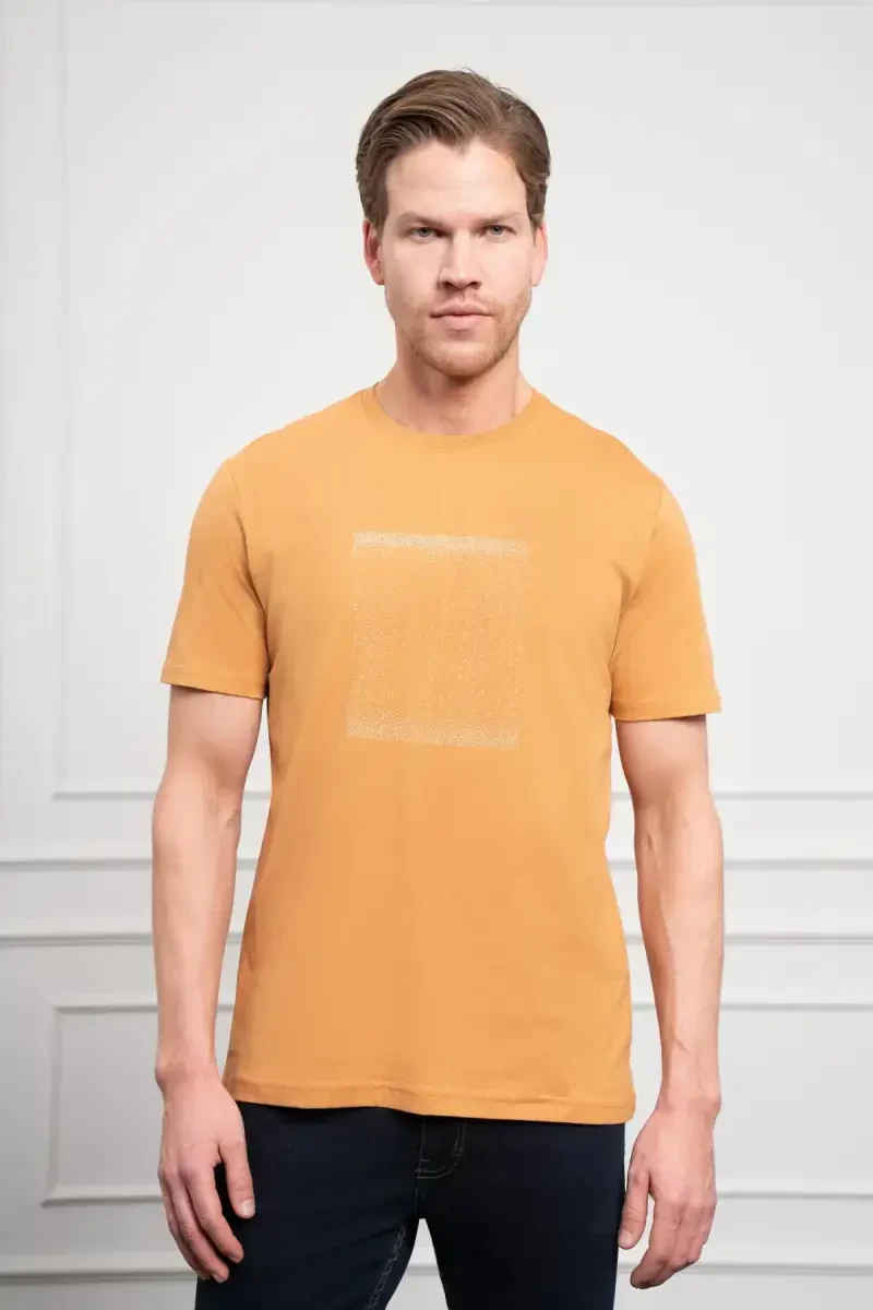 ModaZon Men's Mustard Crew Neck T-Shirt, 100% Cotton, Trend Crew Neck, Dynamic Fit.