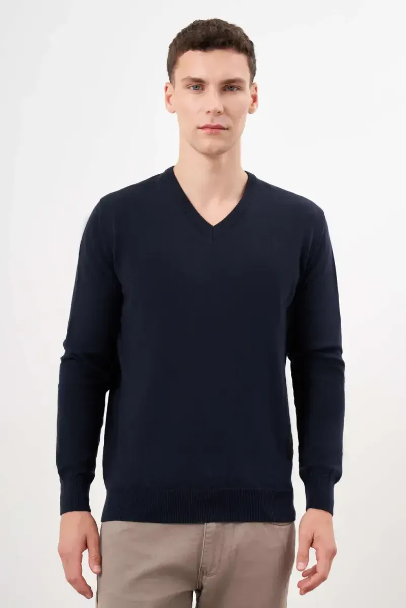 ModaZon Men's Navy Blue Basic V-Neck Dynamic Fit Relaxed Fit Knitwear is poised to become an indispensable part of your wardrobe, perfectly balancing elegance and comfort. Reflecting the stylish stance of the modern man, this knitwear offers an ideal choice for both everyday use and more special moments. The choice of high-quality materials and careful workmanship guarantee the long-lasting use of the knitwear, while the noble and timeless stance of the navy blue color easily adapts to any combination. Thanks to its dynamic fit cut, it fits the body perfectly but does not restrict your freedom of movement in any way, so you can experience a unique comfort experience throughout the day. The V-neck design adds a classic touch and makes it a versatile piece that can adapt to different styles. Whether you combine it with jeans for a sporty look or create a more elegant and sophisticated style with chino pants, ModaZon knitwear will always perfectly complement your style. This knitwear is not just a piece of clothing, but also a lifestyle statement. It is specially designed for men who take care of themselves and want to look modern and stylish. Its soft and high-quality texture caresses your skin, while the depth and elegance of the navy blue color will attract attention. It keeps you warm in cold weather and provides all-day comfort with its breathable and non-sweating structure. This knitwear, produced with ModaZon quality, is a candidate to be the most loved piece in your wardrobe for many years. Take your style to the next level and make a difference with this knitwear, which contains care and quality in every detail. Remember, elegance is hidden in the details, and ModaZon Men's Navy Blue Basic V-Neck Dynamic Fit Relaxed Fit Knitwear helps you reflect your style by offering these details in the best way. The right choice to feel special and express your style in the best way. It is an ideal option for those looking for a timeless and stylish piece that can be worn comfortably in every season. Experience quality and elegance together with ModaZon assurance. You will always look stylish and well-groomed with this knitwear, which will be indispensable in your wardrobe. You will always feel good with this knitwear, which will accompany you in both your daily use and special occasions. This knitwear, which you can easily use in both your business and social life, will help you reflect your style in the best way. Thanks to the quality of its fabric and the modernity of its cut, it always ensures that you look stylish and well-groomed. Renew your style and make a difference with ModaZon.