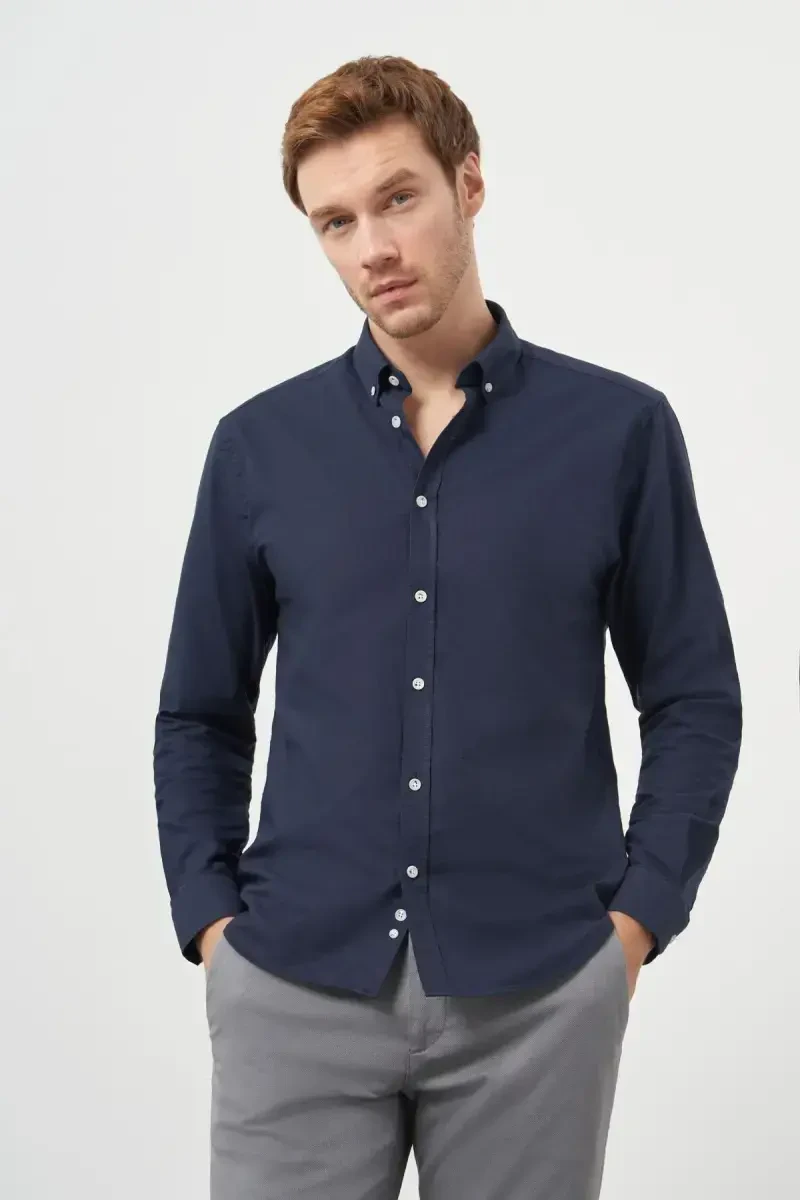 Take your style to the next level with the Modazone Men's Navy Cotton Trend Button-Down Collar Dynamic Fit Shirt. Combining casual elegance and comfort, this shirt is a candidate to be an indispensable part of your wardrobe. Combining the nobility of navy blue with the comfort of cotton fabric, this shirt accompanies you all day long, preventing you from compromising your elegance. You can easily choose this shirt for business life, special occasions or weekend trips, and it has a design that can adapt to any environment. Thanks to its dynamic fit cut, it fits your body perfectly, does not restrict your freedom of movement and creates a modern silhouette. Its button-down collar allows it to easily adapt to both classic and sporty combinations. Thanks to its quality stitching and durable material, it offers long-lasting use. Modazone Men's Navy Cotton Trend Button-Down Collar Dynamic Fit Shirt is not just a shirt, but also a style statement. Always feel good with this shirt, which is the choice of stylish men. Thanks to the breathable structure of its cotton fabric, it prevents sweating and keeps you fresh all day long. Navy blue color can be easily combined with different trousers and jackets, so you can always achieve a stylish and harmonious look. The button details of the shirt add an elegant touch to its design and highlight its elegance. The dynamic fit cut accentuates your body lines and offers a fit look. Produced with Modazone quality, this shirt will take its place in your wardrobe for many years and will accompany you. Remember, choosing the right shirt is one of the most important steps in reflecting your style and feeling good. Take this step correctly with the Modazone Men's Navy Cotton Trend Button-Down Collar Dynamic Fit Shirt and let your elegance speak.