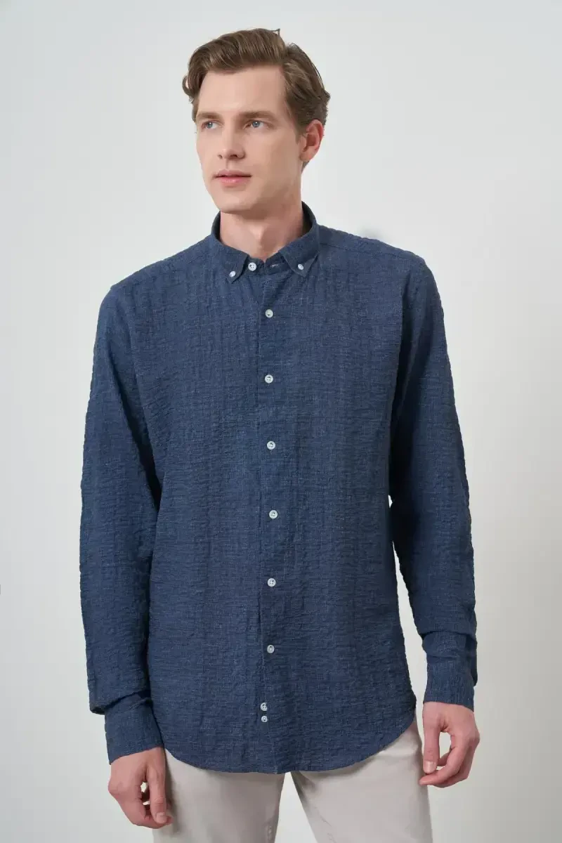 Moda Zonu Men's Navy Blue Cotton Trend Slim Fit Button-Down Collar Shirt has a special design that combines a modern and stylish look. With the nobility of navy blue, the body-hugging structure of the slim fit cut, and the button-down collar detail, this shirt allows you to express your style in any environment. While offering comfortable use throughout the day thanks to its cotton fabric, it also wins the appreciation of men who closely follow fashion with its trendy design. You can easily prefer this shirt in your daily combinations or at special invitations, and it will become one of the indispensable pieces of your wardrobe. Thanks to its high-quality material structure, it offers long-lasting use and maintains its elegance from the first day in every wash. Produced with the Moda Zonu difference, this shirt is an ideal choice for men who are looking for elegance and comfort together. With its modern cut, eye-catching details, and comfortable fabric, this shirt allows you to reflect your style and always look stylish. The navy blue color of the shirt can be easily combined with different colors and allows you to create different styles. Whether you adopt a sporty style or achieve a more classic look, Moda Zonu Men's Navy Blue Cotton Trend Slim Fit Button-Down Collar Shirt will always complement your style. Designed for men who take care of themselves and do not want to compromise on their elegance, this shirt easily matches with other pieces in your wardrobe and helps you create different combinations. Offering elegance and comfort together, this shirt is a piece that you can use in any season. Reflect your style with Moda Zonu Men's Navy Blue Cotton Trend Slim Fit Button-Down Collar Shirt and attract attention in every environment.