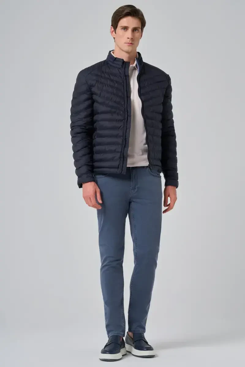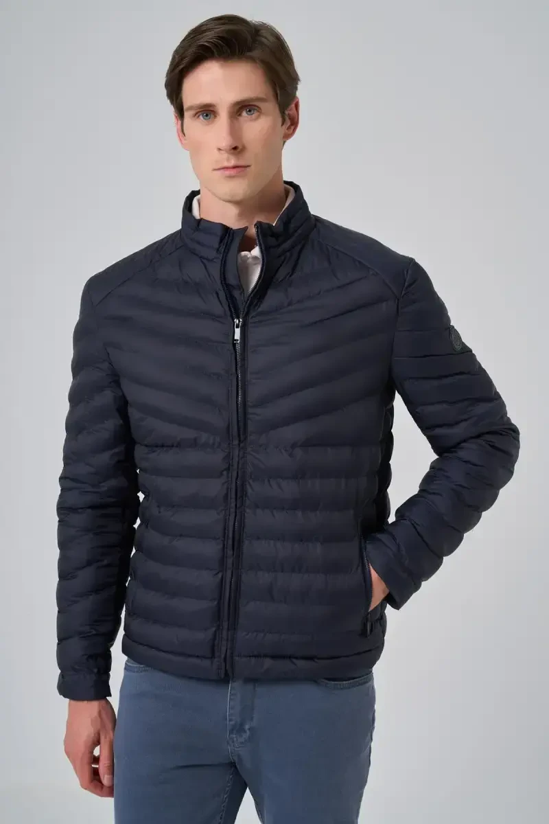 ModaZon Men's Navy Blue Polyester Short Quilted Jacket is an ideal option that will both protect your elegance and keep you warm in cold weather. Thanks to its lightweight structure, it offers comfortable use throughout the day, while its quilted pattern provides a modern look. The navy blue color can be easily combined with any outfit and adds a sophisticated touch to your style.Product DescriptionModaZon Men's Navy Blue Polyester Short Quilted Jacket is a must-have piece in the modern man's wardrobe. It is designed for those who do not want to compromise on style in the intense pace of city life. The outer surface of the jacket is made of high quality polyester material. This makes it both water-resistant and easy to clean. Its inner filling protects your body temperature in cold weather and prevents you from getting cold. Its short cut does not restrict your freedom of movement and offers a sporty look. The quilted pattern adds a modern and stylish touch to the jacket. Navy blue is a classic and timeless option, so it goes perfectly with all your clothes. You can easily choose this jacket for daily use or special events, and it will help you reflect your style. Thanks to its functional pockets, you can safely carry your phone, keys or other small items. The zippered front closure makes it easy to put on and take off, and prevents cold air from entering. Thanks to its high quality material and workmanship, it offers long-lasting use. ModaZon Men's Navy Blue Polyester Short Quilted Jacket will be an indispensable part of your wardrobe in cold weather, offering both elegance and comfort. Whether you combine it with jeans or chino pants, it always ensures you look stylish and well-groomed. It is a perfect gift option for yourself or your loved ones. Make your style speak even in cold weather with this jacket!Product Features* High quality polyester material* Water-resistant outer surface* Warm-keeping inner filling* Modern quilted pattern* Stylish navy blue color* Short cut that provides freedom of movement* Functional pockets* Zippered front closure for easy on and off* Suitable for daily use and special events* Easy to cleanAdditional InformationTo ensure the jacket lasts longer, follow the washing instructions on the label. When you are not using the product, store it in a place away from dust and sunlight. Please review the size chart to choose the size that suits you best.