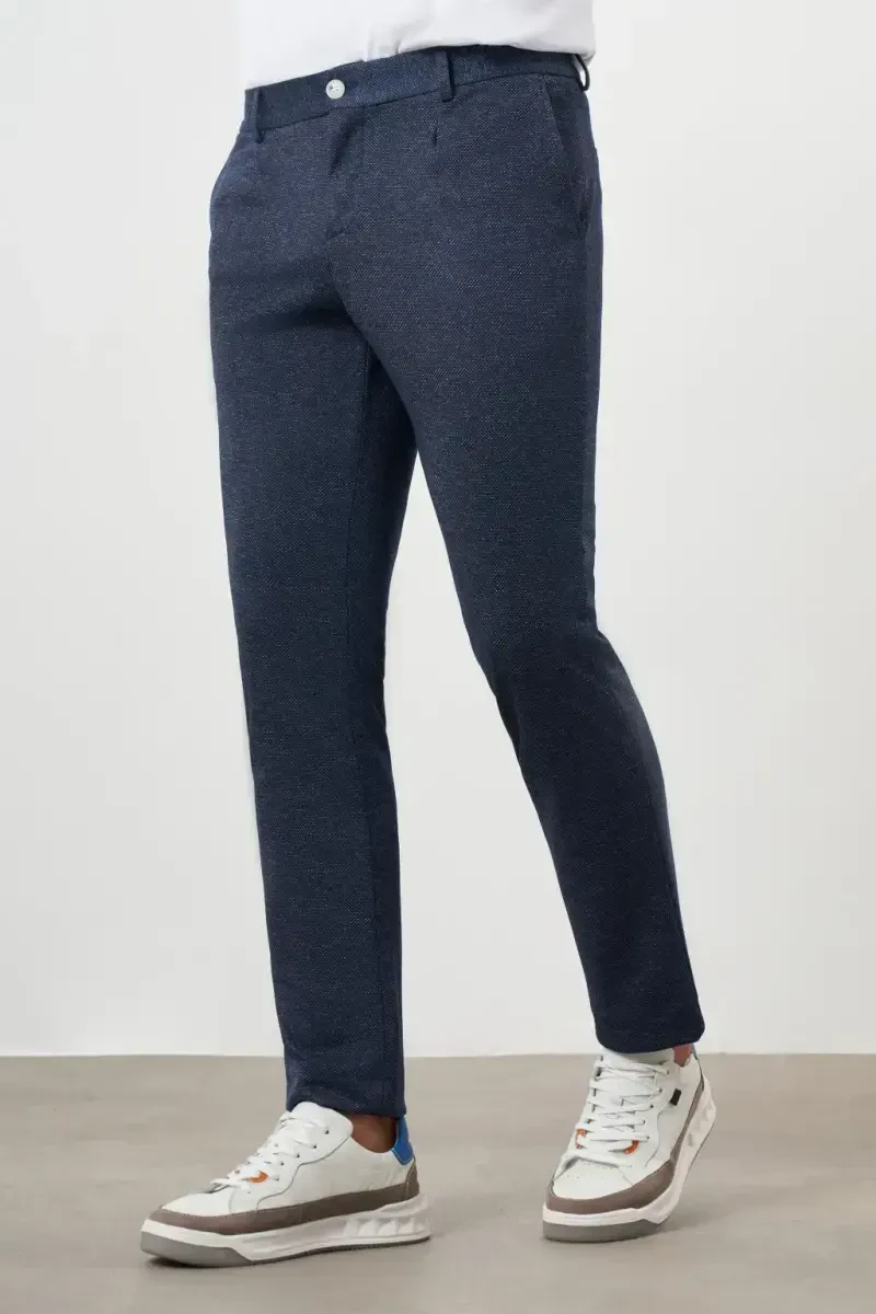 Men's trousers, navy trousers, slim fit trousers, pleated trousers, polyviscose trousers, sports trousers, trendy trousers, fashion trousers, men's clothing, comfortable trousers