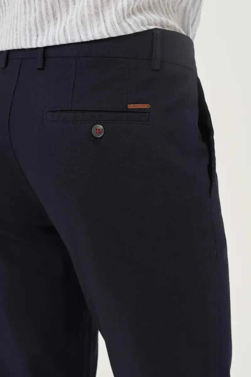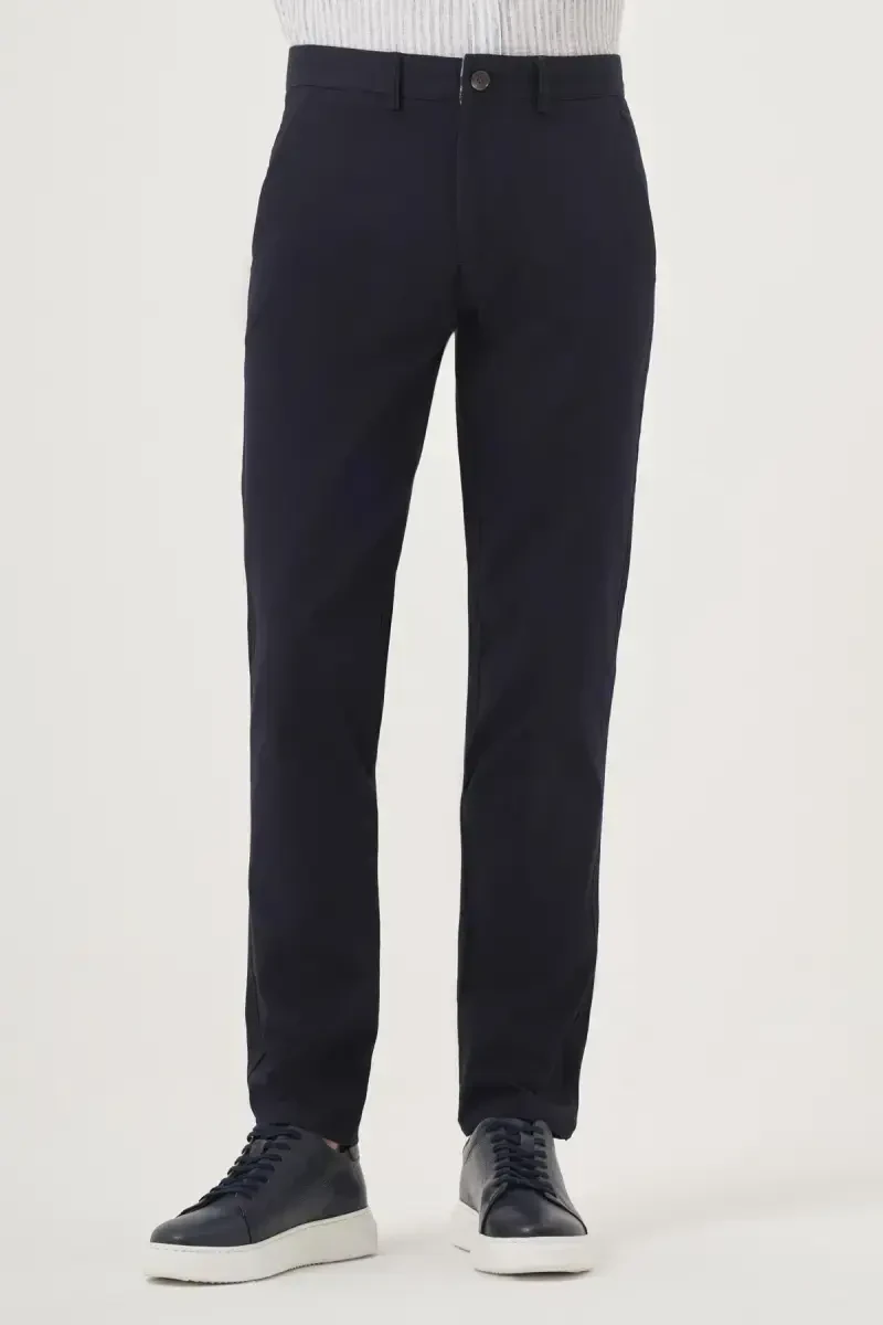 ModaZon Men's Navy Blue Summer Cotton Side Pocket Slim Fit Chino Pants are an ideal choice for men who don't want to compromise on style in hot weather. Thanks to its cotton fabric, it offers comfort all day long, while its slim fit cut provides a modern look. Side pocket details provide both usability and add a different touch to the trousers. The navy blue color offers a wide range of possibilities for creating different combinations. It can be easily preferred both in daily use and on more special occasions.**Product Description**Enjoy being both stylish and comfortable on hot summer days with ModaZon Men's Navy Blue Summer Cotton Side Pocket Slim Fit Chino Pants. These pants are a versatile piece that should be in every modern man's wardrobe. Its high-quality cotton fabric provides breathability and comfort all day long, minimizing sweating in hot weather. The slim fit cut creates a stylish silhouette that fits the body, while not restricting your freedom of movement. Side pocket details not only add an aesthetic touch to the trousers but also allow you to safely carry your small items (phone, keys, wallet, etc.). The classic and timeless stance of navy blue allows it to be easily combined with all kinds of tops and shoes. Whether you create a casual style with a sporty t-shirt and sneakers, or get a more formal look with a stylish shirt and loafer shoes; ModaZon chino pants will help you reflect your style in any environment. The durable stitching and high-quality material of the trousers offer long-lasting use. If the washing instructions are followed, it will retain its color and shape for a long time. Produced with ModaZon quality, these trousers are an option that appeals to both your style and your budget. It is a timeless investment that will easily match other pieces in your wardrobe. Whether you're going to work, meeting friends, traveling or attending a special event, it always keeps you looking stylish and well-groomed. Feel confident in any environment with ModaZon Men's Navy Blue Summer Cotton Side Pocket Slim Fit Chino Pants. These trousers are not just a piece of clothing, but also a way to express your style. Value yourself and enrich your wardrobe with these stylish and useful trousers.**Product Features*** High quality cotton fabric* Slim fit cut* Side pocket details* Navy blue color* Breathable structure* All-day comfort* Versatile combinability* Durable stitching* Long-lasting use* Modern and stylish design**Additional Information**The trousers are easy to care for. Machine washable at 30 degrees. Bleach is not recommended. Can be ironed on low heat. Please follow the washing instructions.