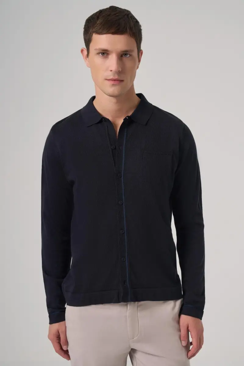 Moda Zonu Men's Navy Blue Trend Polo Collar Shirt Knitwear features a special design that combines elegance and comfort. The polo collar detail adds a modern and sophisticated touch to the shirt, while the knitwear texture offers comfortable wear throughout the day. Its navy blue color easily adapts to any style and is a candidate to be one of the indispensable pieces of your wardrobe. Whether for daily use or special occasions, you can always look stylish with this shirt.**Product Description**Take your style to the next level with the Modazone Men's Navy Blue Trend Polo Collar Shirt Knitwear. This special design caters to the needs of the modern man by offering both elegance and comfort. The polo collar detail adds a classic touch to the shirt, while the softness of the knit fabric ensures comfort throughout the day. The timeless elegance of navy blue allows you to create different combinations. Whether you achieve a casual look with jeans or create a more formal style with elegant trousers, this shirt adapts to any environment.Produced with Modazone quality, this shirt is made of durable materials for long-lasting use. The breathable structure of the fabric prevents perspiration and keeps you feeling fresh all day long. The attention to detail in the stitching guarantees that the shirt fits perfectly on you and does not restrict your freedom of movement.This shirt is not just a piece of clothing, but also an expression of a lifestyle. The Modazone Men's Navy Blue Trend Polo Collar Shirt Knitwear, preferred by self-confident and stylish men, is a candidate to be the most loved piece of your wardrobe. Whether for daily use or for special moments, this shirt will highlight your elegance and is a perfect option to complete your style. Experience the Modazone difference to feel special and attract attention in every environment. Let your style speak with this shirt that combines elegance, comfort and quality.**Product Features*** Polo collar design* Trendy and modern look* Knit fabric* Navy blue color* Comfortable and convenient use* High quality material* Breathable fabric* Stylish and elegant details* Suitable for daily and special use* Easy to combine* Long-lasting use* Design that provides freedom of movement* Fabric structure that prevents perspiration* Careful stitching details**Additional Information**It is recommended to follow the washing instructions for long-lasting use of the product. Washing at low temperature and with similar colors will preserve the structure of the fabric. If the product needs to be ironed, it is recommended to iron it at low temperature and inside out. Dry cleaning can also be applied. Please read the instructions on the product label carefully.