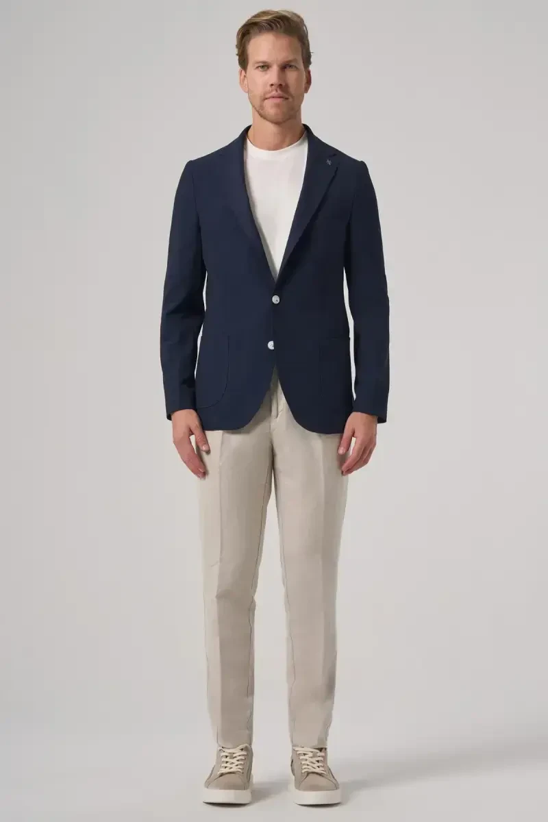 Men's jacket, navy jacket, slim fit jacket, mono collar jacket, trend jacket, ModaZon, men's clothing, modern jacket, stylish jacket, navy blazer