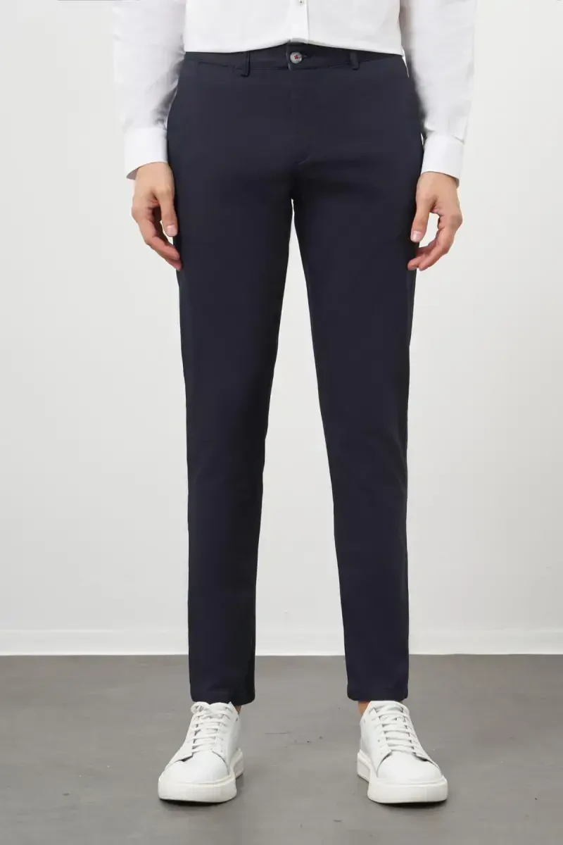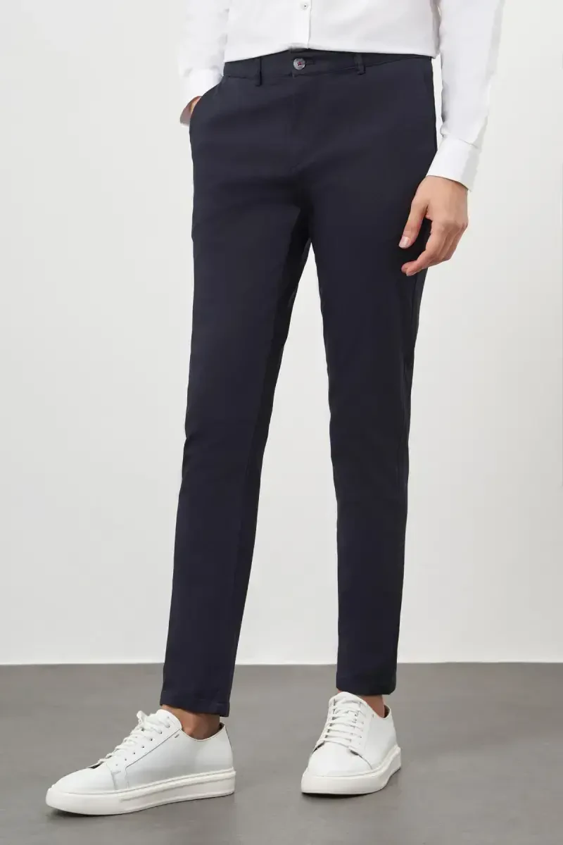 ModaZon Men's Navy Chino Slim Fit Trousers are a must-have for the wardrobe of stylish men. With its modern cut, quality fabric and eye-catching navy color, these trousers are perfectly suited for both everyday use and special events. The slim fit cut of these trousers, which fits the body perfectly, creates a stylish silhouette by making the legs look longer and fitter. The breathable structure of the chino fabric offers comfort throughout the day and does not restrict your freedom of movement. Whether you create a comfortable weekend combination with a t-shirt and sneakers, or get a more stylish look with a shirt and blazer, ModaZon Men's Navy Chino Slim Fit Trousers will help you reflect your style in any situation. The navy color of the trousers can be easily combined with different colors and patterns. You can create a classic look with a white shirt and brown leather shoes, or you can catch a more energetic style with a t-shirt and sneakers in vibrant colors. The stitching details and quality workmanship of the trousers offer long-lasting use. The placement and design of the pockets add both a functional and aesthetic touch to the trousers. You can easily carry your keys, phone and other items in daily use. ModaZon, as a brand that combines quality and elegance in men's fashion, aims to meet your expectations with these trousers as well. These trousers, which will easily match with other pieces in your wardrobe, will take your style to the next level. The texture of the fabric gives your skin a soft feeling, while ironing is also very practical. This feature, which saves you time, is a great advantage for men working at a busy pace. ModaZon Men's Navy Chino Slim Fit Trousers are not just a piece of clothing, but also a style statement. Discover these trousers now that will increase your self-confidence and make you stand out in any environment!