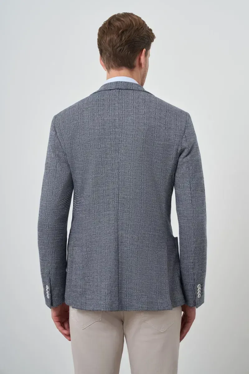 ModaZon Navy Blue Slim Fit Men's Jacket | Knitted Mono Collar Elegance