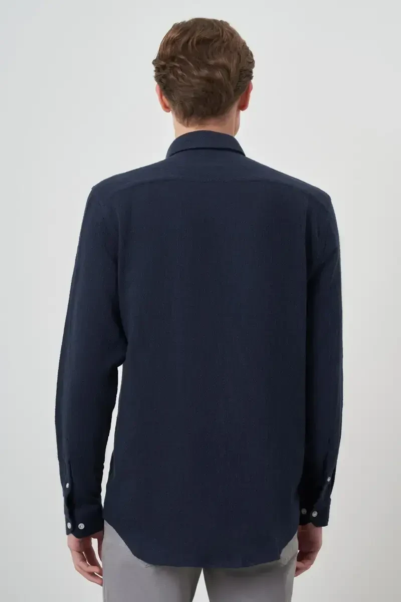 Men's shirt, navy blue shirt, linen shirt, slim fit shirt, button-down collar, trendy shirt, summer shirt, office shirt, long sleeve shirt, Modazone