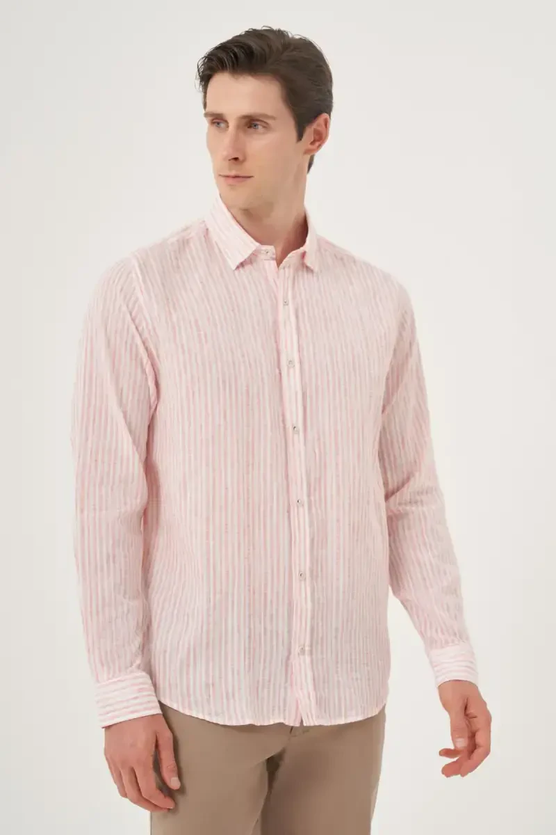 The ModaZOne Men's Red Linen Trend Dynamic Fit Britli Collar Shirt is a striking and comfortable option that complements the style of the modern man. The vibrancy of the red color and the natural texture of the linen fabric come together to offer a stylish and comfortable wearing experience. This shirt appeals to a wide range of uses, from daily wear to special events. Thanks to its dynamic fit cut, it fits your body perfectly, does not restrict your freedom of movement and allows you to feel comfortable all day long. The Britli collar detail adds a sophisticated touch to the shirt and highlights your style. The breathable structure of the linen fabric prevents sweating in hot weather and helps you stay cool. Produced with ModaZOne quality, this shirt offers long-lasting use and is a candidate to be one of the indispensable pieces of your wardrobe. Whether you create a sporty look with jeans or a more formal style by combining it with stylish fabric trousers, this shirt will give you confidence in any situation. Impress everyone around you with the energy of the red color and let your style speak with the ModaZOne difference. The stitching quality of the shirt, the texture of its fabric and the care in the collar details are the elements that will complete your elegance. The dynamic fit pattern reveals your body lines in the best way while ensuring that you do not compromise on your comfort. This shirt is an ideal choice for men who want to reflect their style and feel comfortable all day long. Redefine your style with the ModaZOne Men's Red Linen Trend Dynamic Fit Britli Collar Shirt and make a difference in any environment. This shirt, which is a candidate to be the most loved piece of your wardrobe, will accompany you both in daily use and on special occasions. Offering elegance and comfort together, this shirt will be indispensable for stylish men. Attract attention in every environment you enter with the energy of the red color and let your style speak with ModaZOne quality. This shirt is not just a piece of clothing, but also an expression of your style.