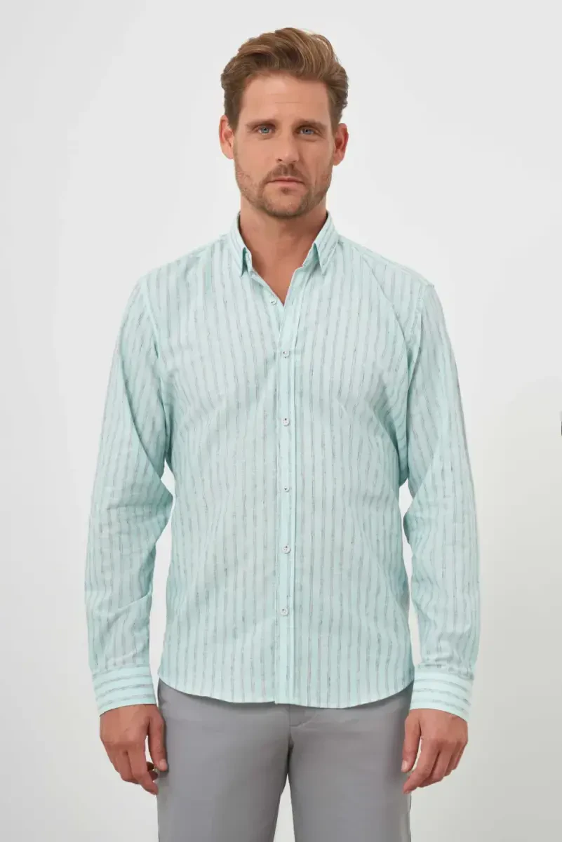 ModaZon Men's Aqua Green Cotton Striped-Panel Italian Collar Regular Fit Shirt is a must-have piece in the wardrobe of stylish men. The aqua green color reflects the energy of the summer months, while the cotton fabric provides a high level of comfort all day long. The striped and paneled details of the shirt offer a modern and dynamic look, while the Italian collar cut emphasizes elegance and sophistication. The regular fit cut offers a comfortable cut that fits the body but does not restrict freedom of movement. In this way, you can reflect your style both at special events and in daily use. The stitching quality of the shirt and the careful selection of the materials used offer a long-lasting use experience. This shirt, produced with ModaZon quality, will be one of the indispensable pieces of your wardrobe. Whether you get a sporty look with jeans or create a more classic style with fabric trousers, this shirt will always highlight your elegance. You can be sure that you will attract attention with the freshness of the aqua green color and the modern touch of the striped-paneled design. The breathable structure of the cotton fabric prevents sweating, especially in hot weather, keeping you fresh all day long. The Italian collar detail offers different style options with its suitability for tie or bow tie use. The regular fit cut helps you achieve a perfect look by adapting to every body type. This shirt is an ideal choice for men who are looking for both elegance and comfort. The durable structure of the shirt maintains its resistance to frequent washing and offers long-term use. The vibrancy of the aqua green color allows you to create different combinations by easily matching with other pieces in your wardrobe. Striped and paneled details add a unique touch to the shirt and help you reflect your style. The Italian collar cut adapts to different environments with a combination of both classic and modern style. The regular fit cut offers a cut that fits the body but does not restrict your freedom of movement. ModaZon Men's Aqua Green Cotton Striped-Panel Italian Collar Regular Fit Shirt is a candidate to be the indispensable of stylish men. It is a perfect choice for those who want to be both stylish and comfortable. You will always feel good with this shirt on special occasions or in daily use. The energy of the aqua green color, the comfort of the cotton fabric and the elegance of the Italian collar cut come together to offer a unique experience. The striped and paneled details of the shirt allow you to get away from ordinariness and highlight your style. The regular fit cut reveals your body lines in a beautiful way, while not restricting your freedom of movement. This shirt can be easily combined with other pieces in your wardrobe and allows you to always achieve a stylish and modern look. This shirt, produced with ModaZon quality, will be your favorite piece in your wardrobe for many years.
