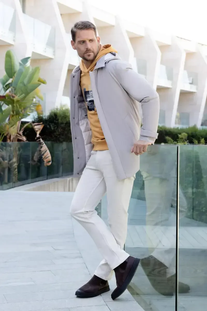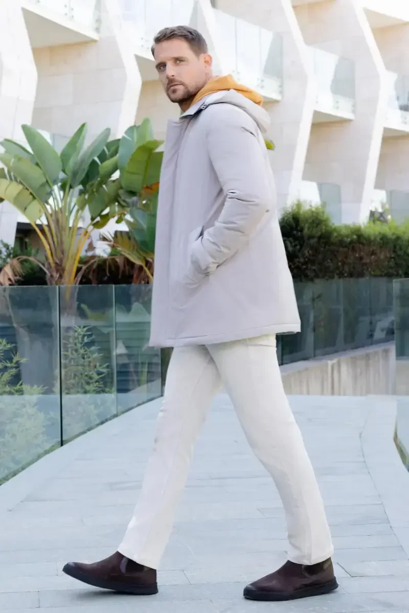 Men's jacket, stone color, polyamide jacket, snap button jacket, hooded jacket, Modazone, winter jacket, warm jacket, lightweight jacket, daily jacket