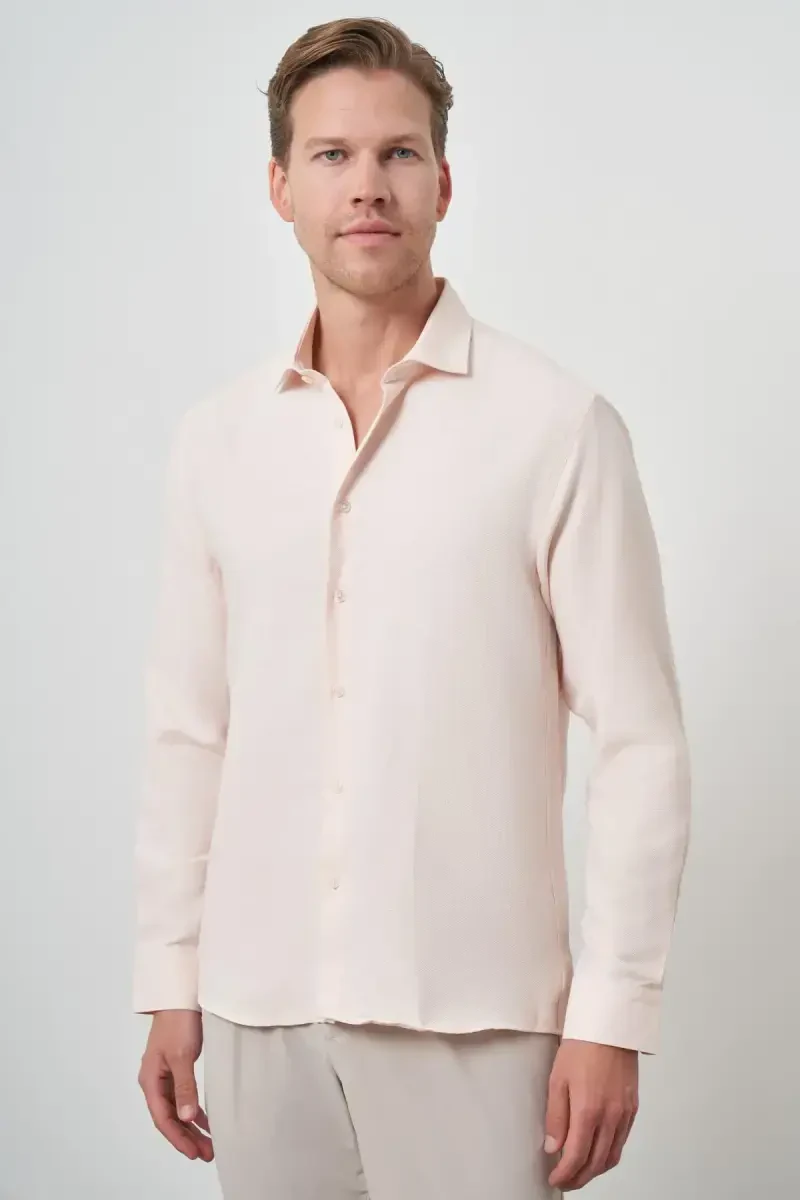 Men's shirt, slim fit, Italian collar, salmon pink, modazone, stylish shirt, comfortable shirt, men's fashion, shirt combinations, quality shirt