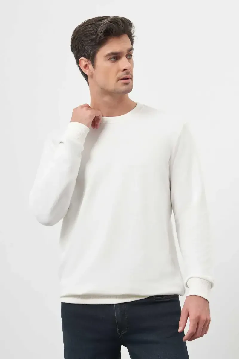ModaZon Men's White Basic Crew Neck Sweatshirt is made of 65% Cotton 35% Polyester fabric. It has long sleeves, a crew neck, and is plain white. Suitable for daily use.Product DescriptionComplete your style with simplicity with the ModaZon Men's White Basic Crew Neck Sweatshirt. This sweatshirt is one of the essential pieces that should be in the wardrobe of a modern man. Offering both comfort and elegance, this sweatshirt is ready to accompany you at any moment of the day. Whether you are relaxing at home, meeting with friends, or doing sports, it has a design that you can easily use in any environment. The nobility of white and the modern stance of the crew neck make this sweatshirt unique. Thanks to its 65% cotton and 35% polyester blend fabric, it offers both a soft touch and long-lasting use. Cotton helps your skin breathe, while polyester increases the durability of the fabric. This ensures that your sweatshirt stays like new for a long time. The long-sleeved design keeps you warm in cool weather, while the crew neck detail adds a modern and stylish look. The plain white color provides endless options by matching with any combination. You can easily combine it with jeans, sweatpants, or even shorts. You can also personalize your style with your choice of accessories. You can complete your look with a hat, a necklace, or a watch. ModaZon Men's White Basic Crew Neck Sweatshirt is not just a piece of clothing, but also a lifestyle. It is an ideal choice for men who like simplicity and comfort. Feel stylish and comfortable at all times with this sweatshirt, which will be an indispensable part of your wardrobe. Thanks to the easy-to-clean feature of the product, it provides practicality in the busy pace of daily life. Being machine washable saves you time and allows you to always look clean and well-groomed. The structure of the fabric minimizes problems such as shrinkage or fading after washing. This means that you can safely use your sweatshirt for many years. Produced with ModaZon quality, this sweatshirt is a high-end product in terms of both material quality and workmanship. Each stitch is carefully sewn, and each detail is meticulously thought out. In this way, you will not experience any deformation or wear even in long-term use. As a brand that directs men's fashion, ModaZon always follows the latest trends and aims to offer its customers the highest quality products. The Men's White Basic Crew Neck Sweatshirt is a product of this understanding. Order now to add simplicity and elegance to your style and experience the ModaZon privilege.Product Features* 65% Cotton 35% Polyester fabric* Long sleeve design* Crew neck* Plain white color* Suitable for daily useAdditional InformationFor long-lasting use of the product, follow the usage and washing instructions. Wash colored and white laundry separately. Iron the product inside out.