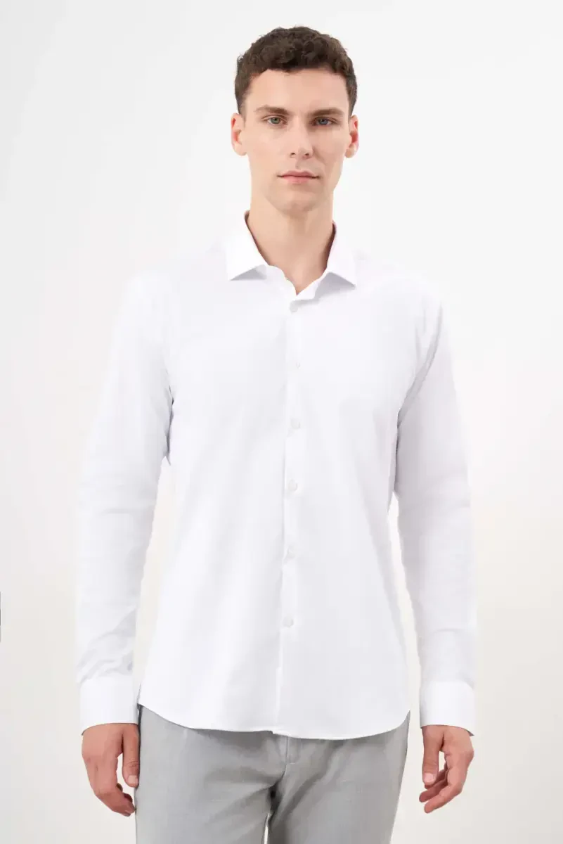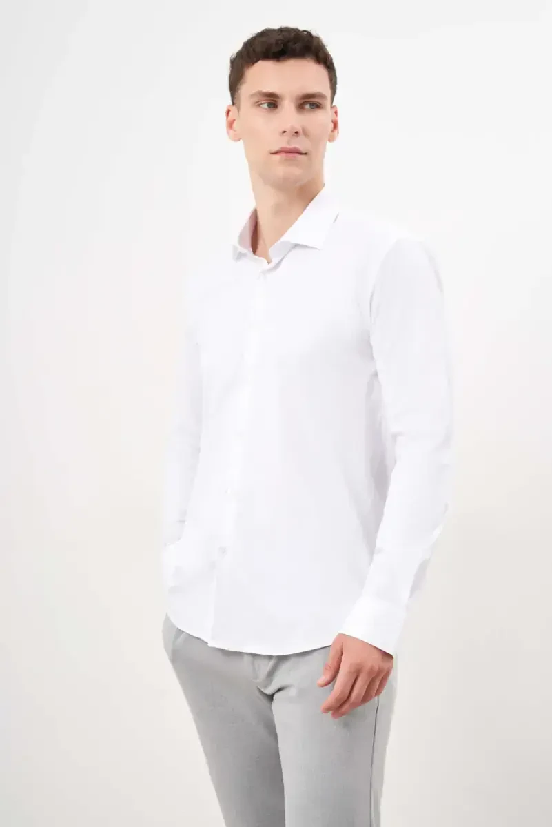 Men's shirt, white shirt, slim fit, Italian collar, basic shirt, plain pattern, cotton shirt, Modazone, stylish shirt, men's clothing