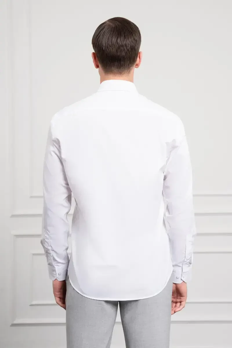 Modazone White Basic Shirt | Men's Regular Fit, Stiff Collar, Pocketed | Stylish and Comfortable Shirt