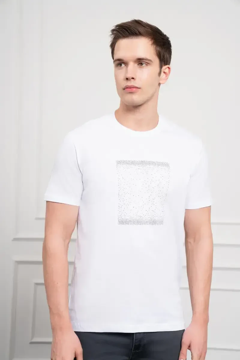 Мужская футболка, белая футболка, футболка с круглым вырезом, хлопковая футболка, динамичная посадка, трендовая футболка, повседневная футболка, удобная футболка, спортивная футболка, Modazone