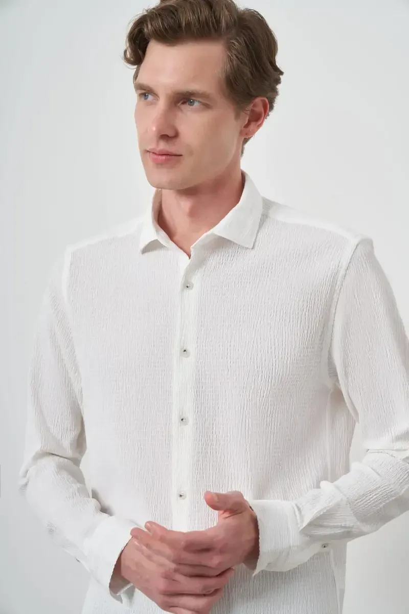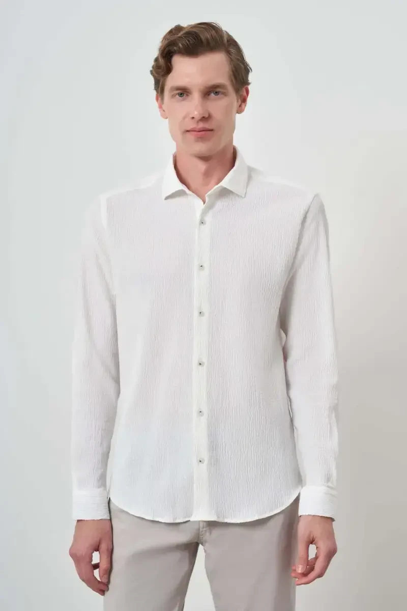 Moda zevkinize ve güncel trendlere önem veren erkekler için tasarlanan Modazone Erkek Beyaz Gofre Trend Desenli Dynamic Fit İtalyan Yaka Gömlek, gardırobunuzun vazgeçilmez parçalarından biri olmaya aday. Şıklığı ve konforu bir araya getiren bu gömlek, özel tasarımı ve kaliteli kumaşıyla öne çıkıyor. Gömleğin modern kesimi, vücudunuzun hatlarını zarifçe takip ederek dinamik bir görünüm sunar. Beyaz rengin asaleti ve gofre desenin özgün dokusu, gömleğe farklı bir boyut kazandırarak stilinizi en iyi şekilde yansıtmanıza yardımcı olur. İtalyan yaka detayı, klasik gömlek anlayışına modern bir dokunuş yaparak, hem günlük kullanıma hem de özel davetlere uygun bir şıklık sunar. Uzun kollu tasarımı sayesinde mevsim geçişlerinde rahatlıkla tercih edilebilirken, manşet detayları gömleğe sofistike bir hava katmaktadır. Pamuk karışımlı kumaş, gün boyu nefes alabilirlik ve konfor sağlayarak, terlemeyi önler ve cildinizi tahriş etmez. Gömleğin kumaşının kalitesi, uzun ömürlü kullanım imkanı sunarken, yıkama ve ütüleme işlemlerinde de kolaylık sağlar. Modazone Erkek Beyaz Gofre Trend Desenli Dynamic Fit İtalyan Yaka Gömlek, jean pantolonlarla casual bir tarz yaratmanıza olanak sağlarken, klasik kesim pantolonlarla kombinleyerek daha resmi bir görünüm elde edebilirsiniz. Ceket ve kravat kombinasyonlarıyla da mükemmel bir uyum yakalayarak, iş toplantılarında veya özel günlerde dikkatleri üzerinize çekebilirsiniz. Bu gömlek, sadece şık görünmekle kalmayıp aynı zamanda rahat ve özgür hissetmenizi de sağlar. Gardırobunuzdaki diğer parçalarla kolayca kombinleyebileceğiniz bu gömlek, stilinizi tamamlayacak ve size özgüven katacaktır. Modazone kalitesiyle üretilen bu gömlek, uzun yıllar boyunca ilk günkü şıklığını koruyarak, gardırobunuzun en değerli parçalarından biri olacaktır. Kendi tarzınızı yansıtmak ve her ortamda dikkat çekmek istiyorsanız, Modazone Erkek Beyaz Gofre Trend Desenli Dynamic Fit İtalyan Yaka Gömlek tam size göre. Hemen sipariş verin ve şıklığın keyfini çıkarın!