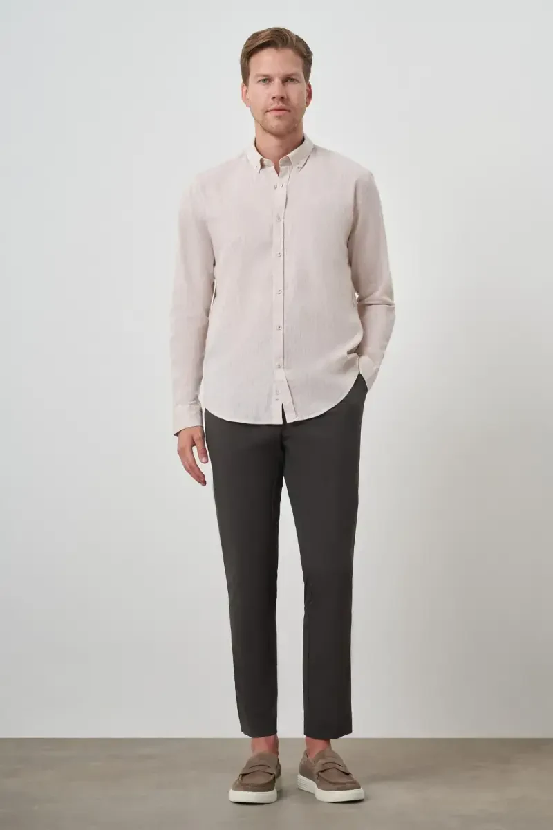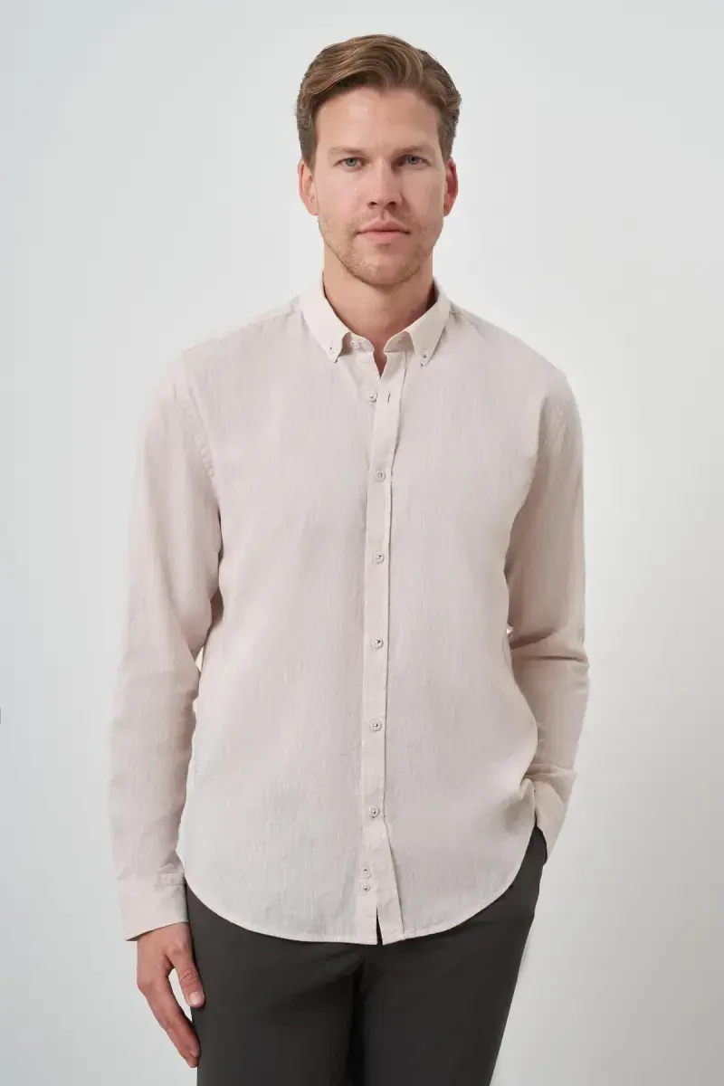 Мужская бежевая льняная рубашка Modazone Trend Dynamic Fit с воротником на пуговицах - идеальный выбор для мужчин, которые не хотят жертвовать стилем в жаркую погоду. Легкая и дышащая структура льна предотвращает потоотделение в течение дня и обеспечивает комфорт вашей коже. Крой рубашки dynamic fit обеспечивает облегающий, но не ограничивающий свободу движений дизайн. Таким образом, вы будете выглядеть подтянутым и сможете легко выполнять свои повседневные дела. Деталь с воротником на пуговицах придает рубашке особый вид, сочетая в себе классический и современный стили. Бежевый цвет - отличный вариант для тех, кто любит натуральные тона и хочет иметь в своем гардеробе универсальные вещи. Этот цвет легко сочетается с разными цветами, такими как темно-синий, коричневый, белый или черный. Рубашку можно носить как в повседневной жизни с джинсами и кроссовками, так и на более элегантном мероприятии с тканевыми брюками и лоферами. Вы также можете персонализировать свой стиль с помощью выбора аксессуаров. Например, вы можете добавить изысканный штрих к своему образу с помощью стильных часов и кожаного ремня. Мужская бежевая льняная рубашка ModaZon - это не только стильный, но и прочный продукт. Качественная льняная ткань обеспечивает длительный срок службы. При правильном уходе вы сможете носить свою рубашку долгие годы, как в первый день. Следуя инструкциям по стирке, вы сможете сохранить ее цвет и текстуру. Эта рубашка станет одной из основных вещей в вашем гардеробе и всегда будет выглядеть стильно и комфортно. Эта рубашка, разработанная с качеством ModaZon, поможет вам отразить свой стиль и не жертвовать комфортом. Выберите мужскую бежевую льняную рубашку ModaZon, чтобы оставаться прохладным и стильным в летние месяцы, и позвольте вашему стилю говорить за вас.