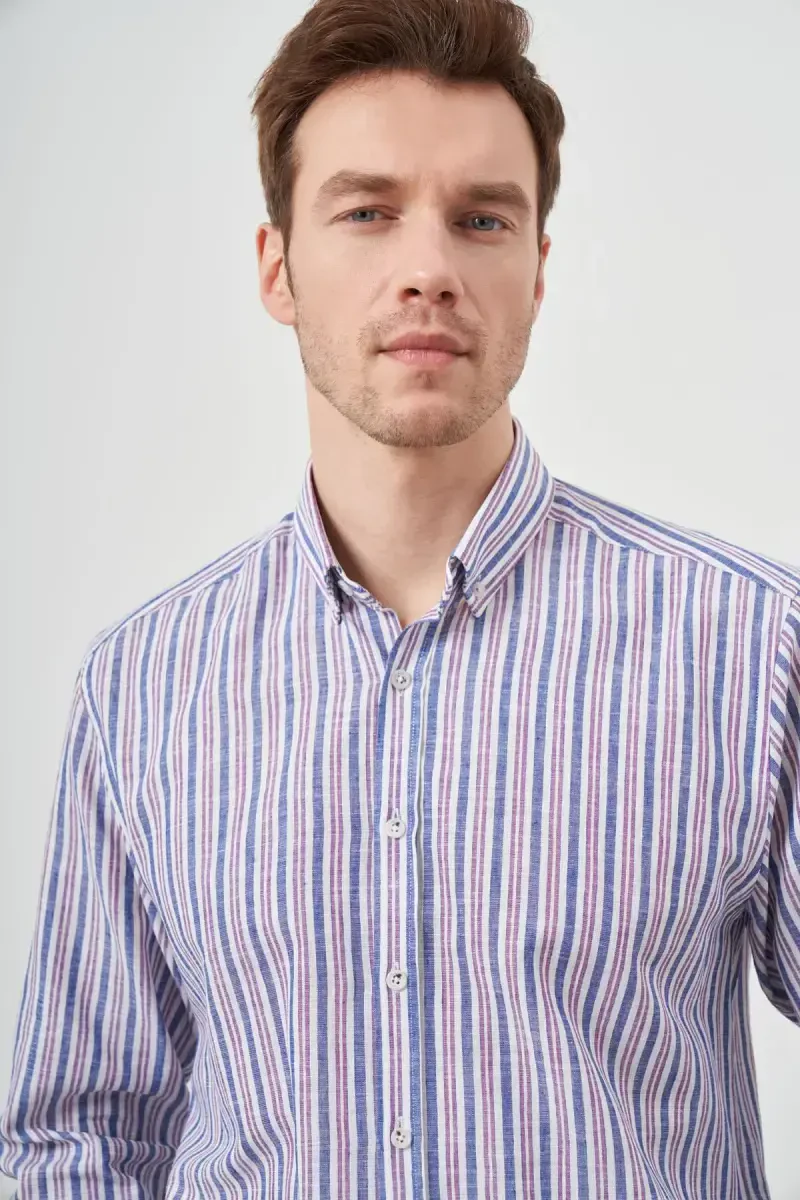 ModaZon Бордовая Льняная Мужская Рубашка | Застегивающийся Воротник Regular Fit